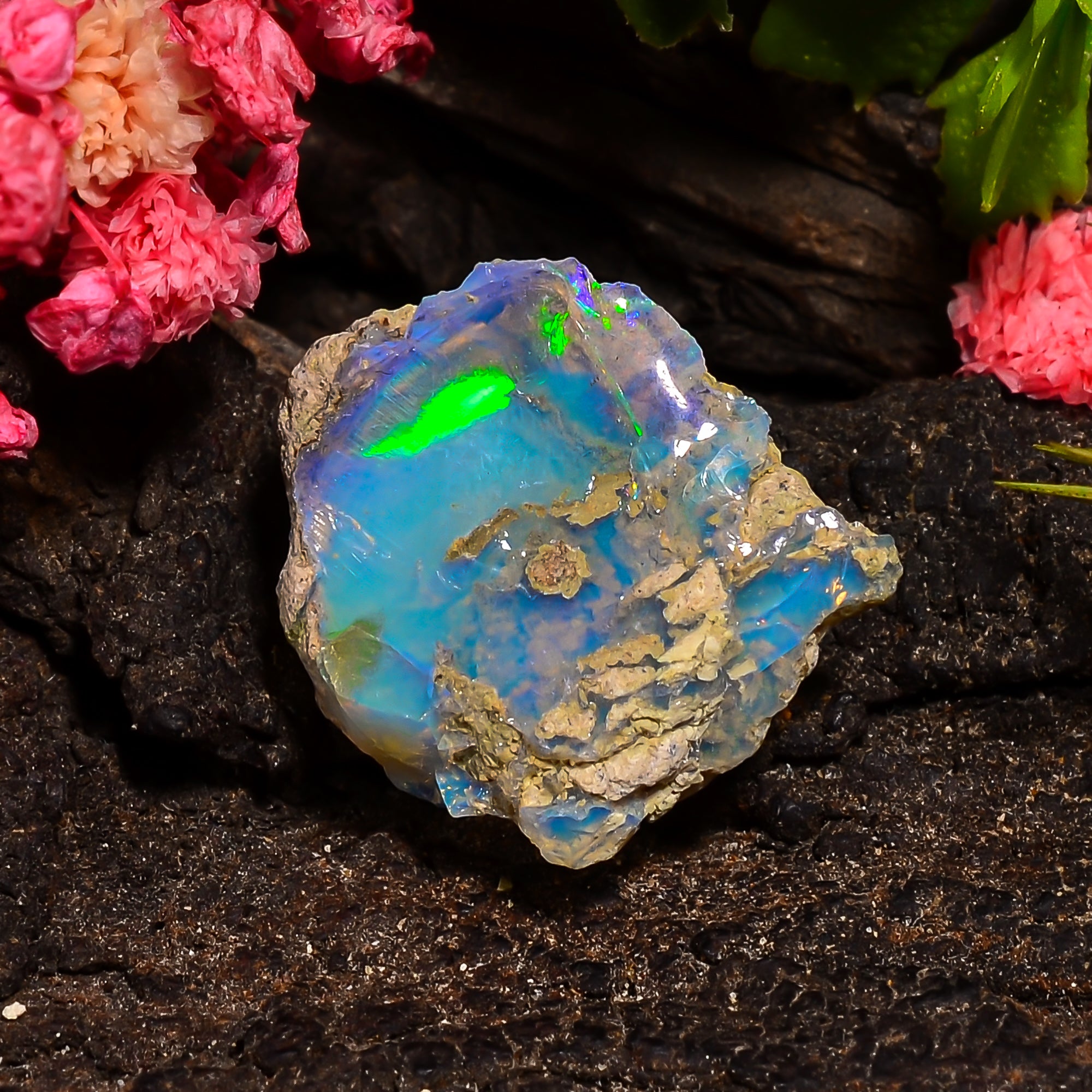 This authentic raw Ethiopian opal offers vibrant color play and natural brilliance, making it a valuable addition to any gemstone collection.
