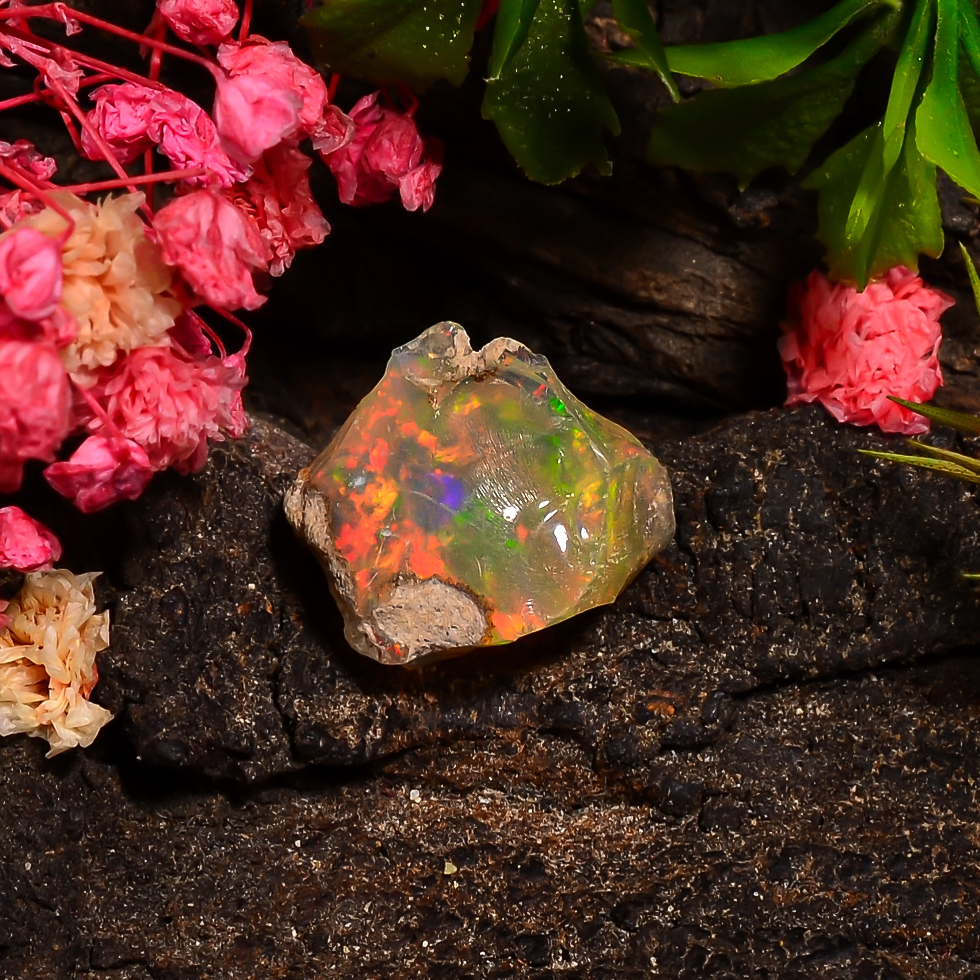 This authentic raw Ethiopian opal offers vibrant color play and natural brilliance, making it a valuable addition to any gemstone collection.