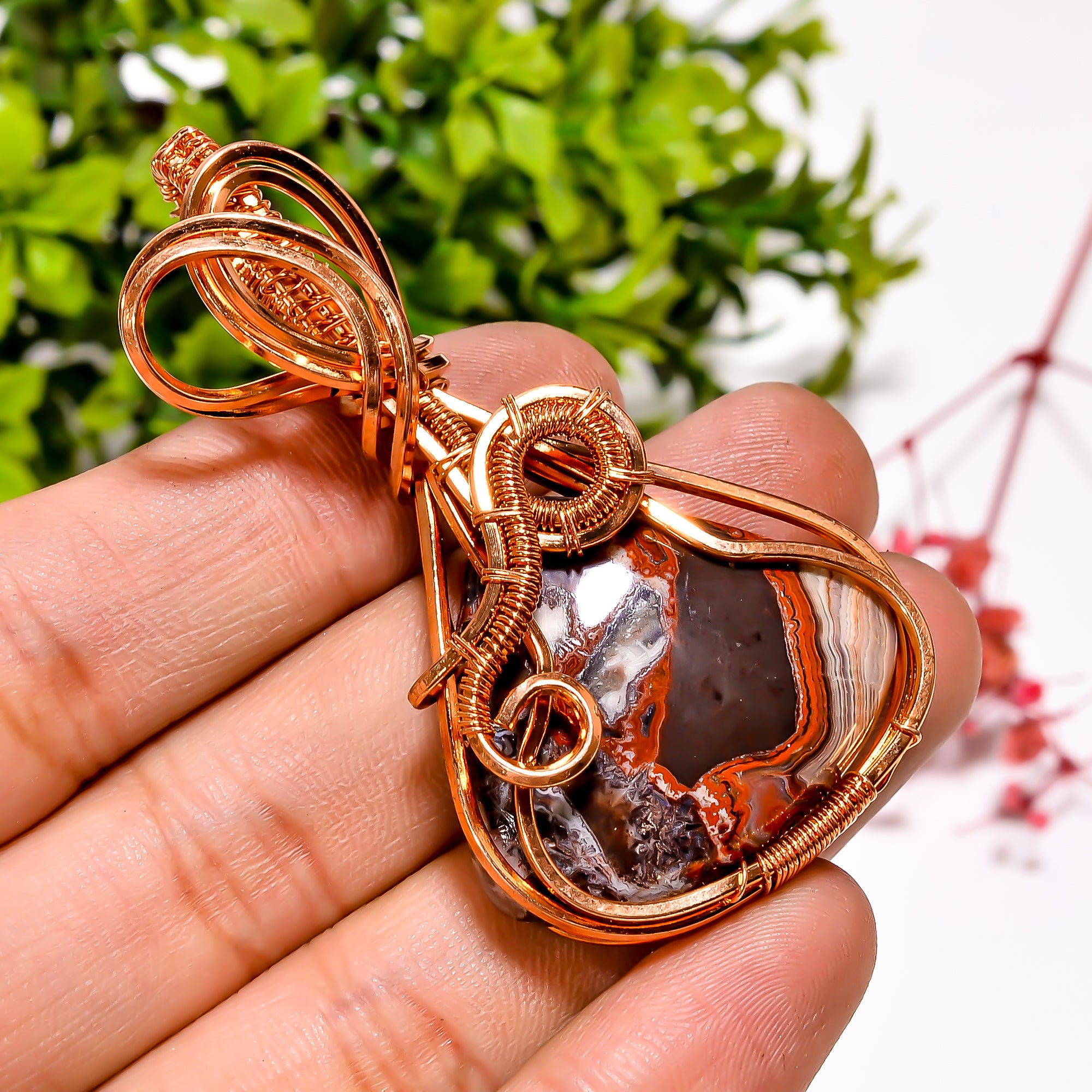 Beautiful A One Quality 100% Natural Crazy Lace Agate Gemstone Heart Vintage Handmade Pure Copper Wire Wrapped Pendant 2.4" 18.3 gms. KR11-4