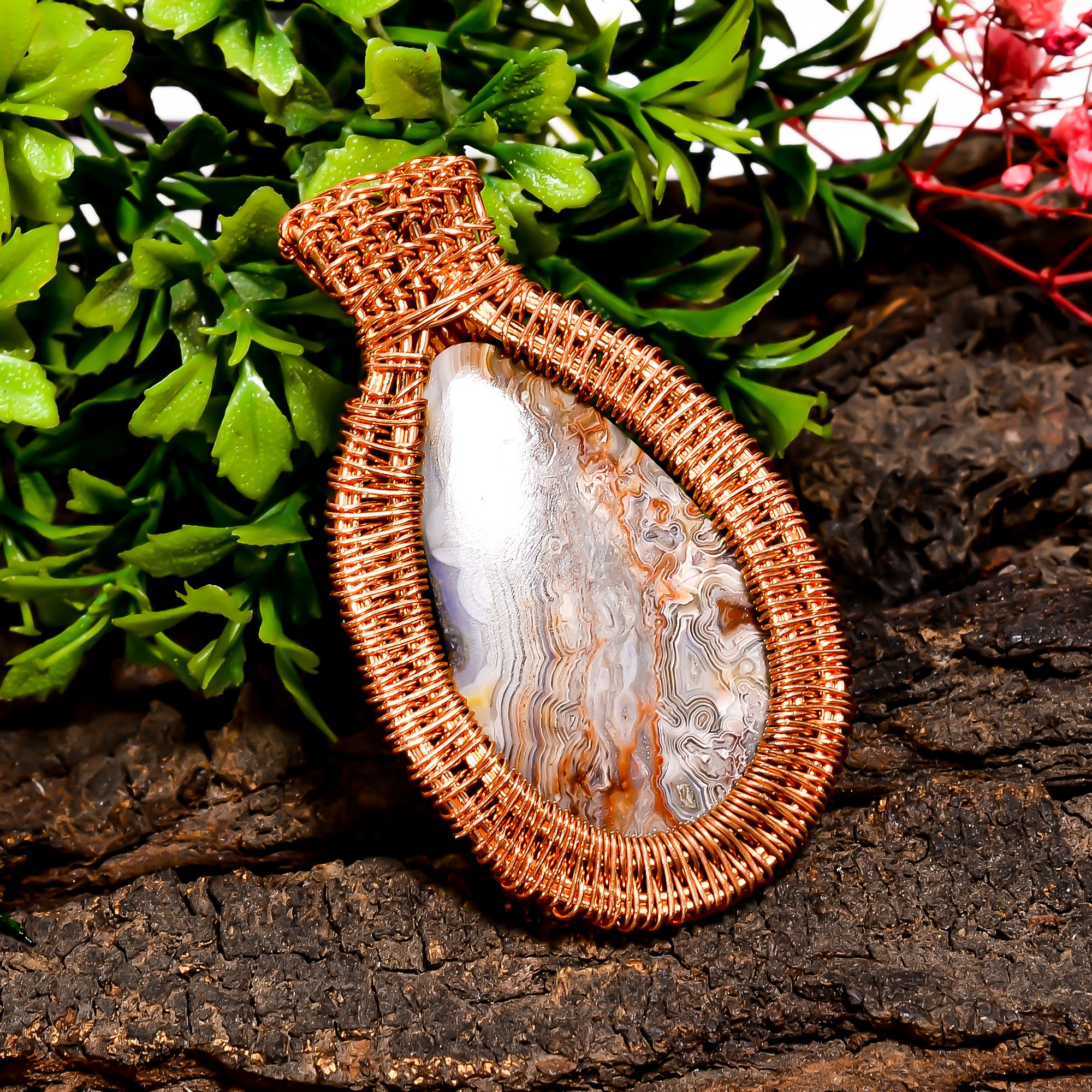 Classic A One Quality 100% Natural Crazy Lace Agate Gemstone Pear Vintage Handmade Pure Copper Wire Wrapped Pendant 2.4" 15.2 gms. KR10-80