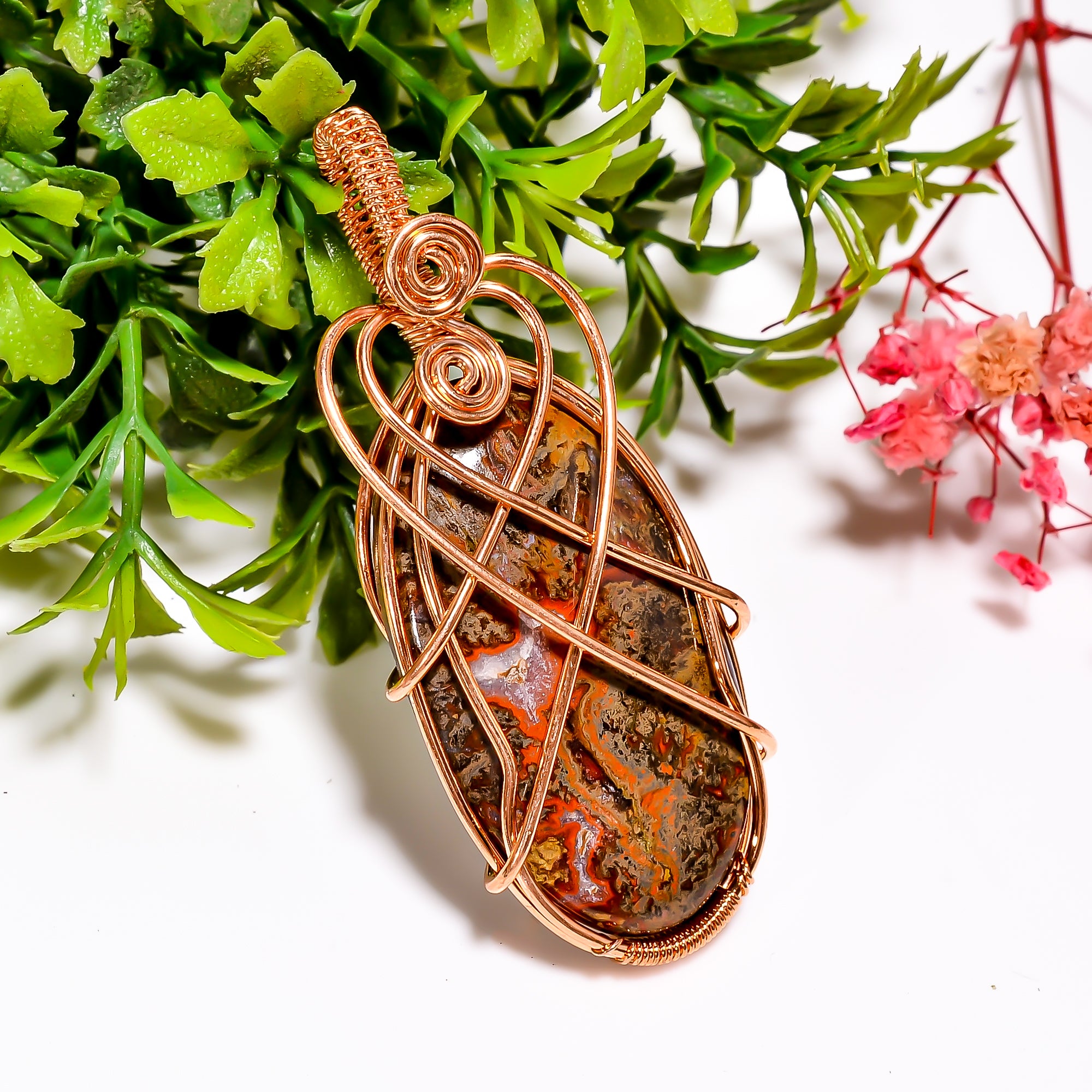 Dazzling A One Quality 100% Natural Seam Agate Gemstone Oval Vintage Handmade Jewelry Pure Copper Wire Wrapped Pendant 2.4" 14.1 gms KR11-31