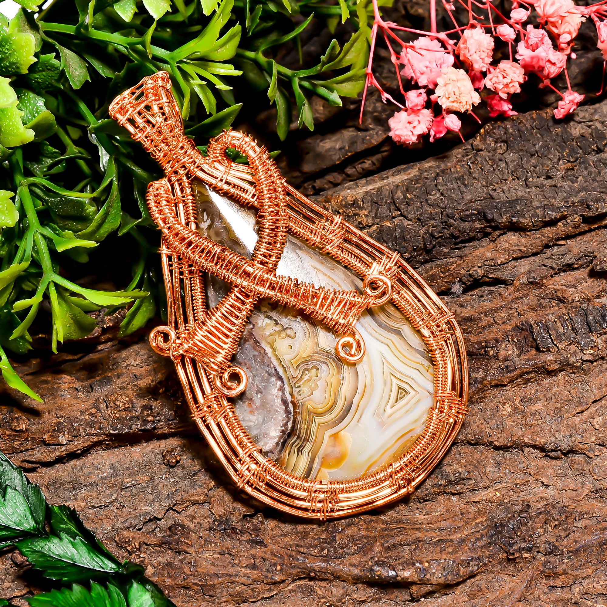 Elegant Top Grade Quality 100% Natural Crazy Lace Agate Gemstone Pear Vintage Handmade Pure Copper Wire Wrapped Pendant 2.7" 20.7 gms KR0984