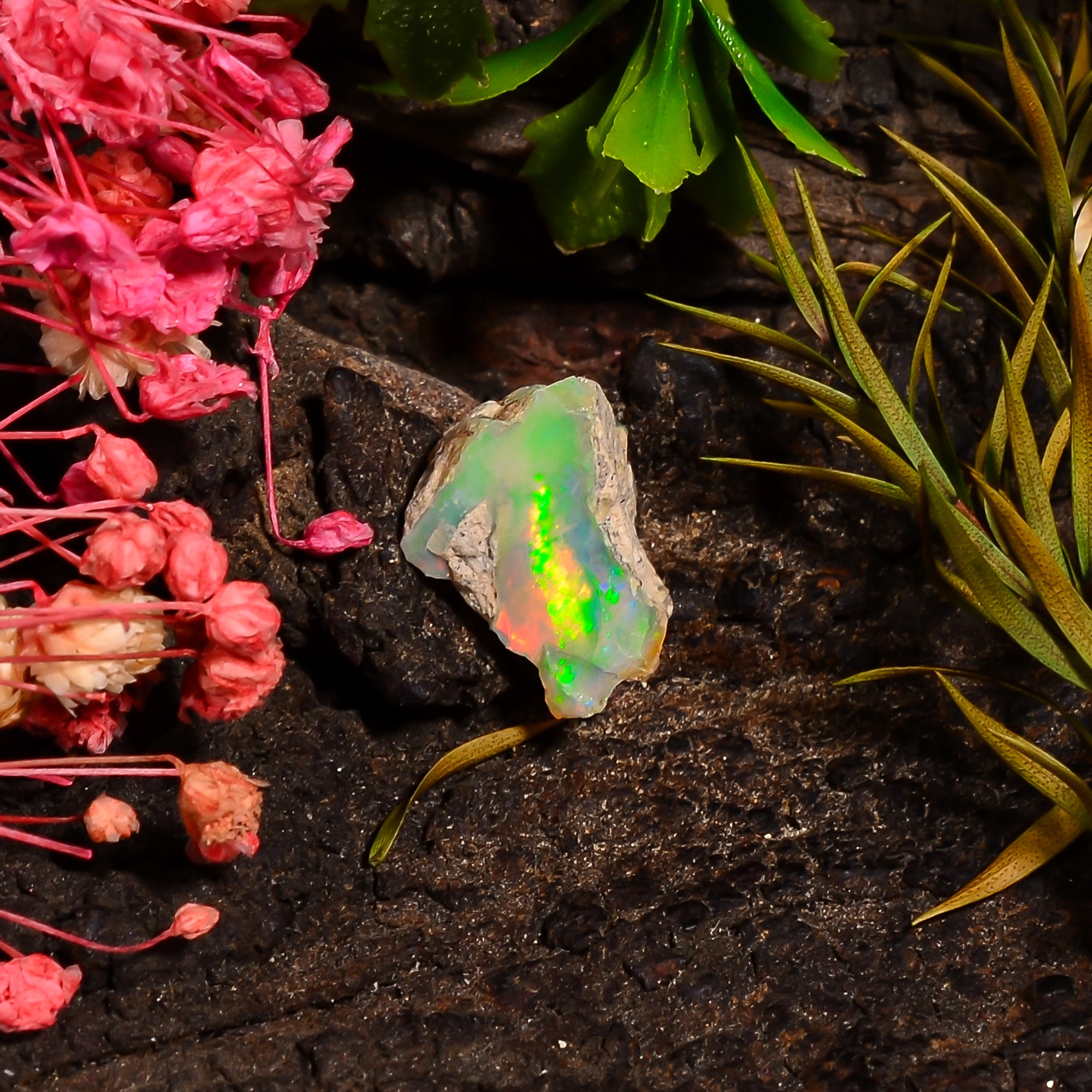 This authentic raw Ethiopian opal offers vibrant color play and natural brilliance, making it a valuable addition to any gemstone collection.