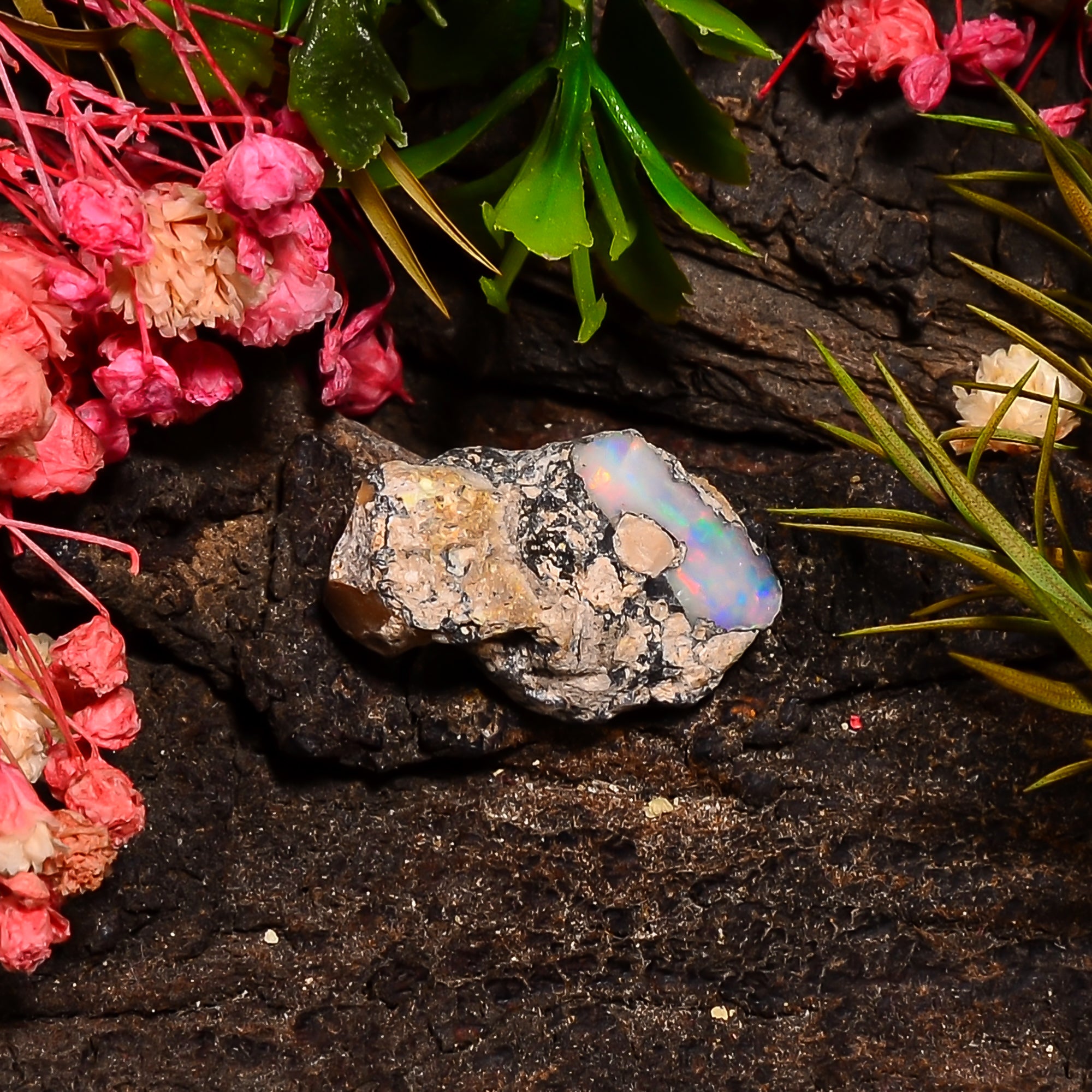 This authentic raw Ethiopian opal offers vibrant color play and natural brilliance, making it a valuable addition to any gemstone collection.