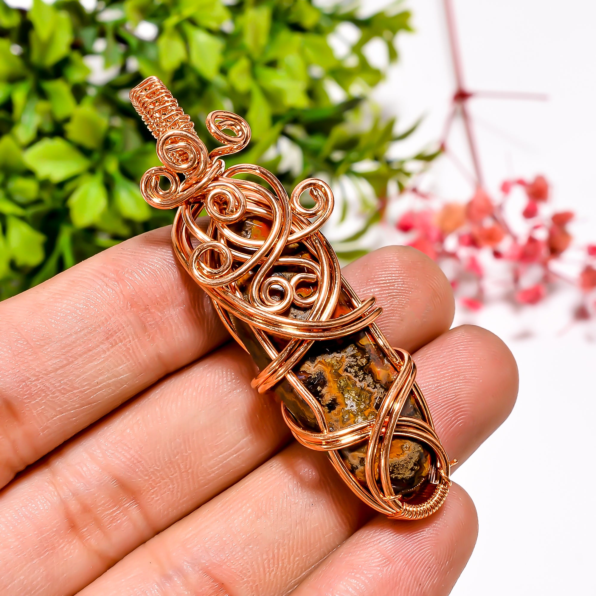 Excellent A One Quality 100% Natural Seam Agate Gemstone Oval Vintage Handmade Jewelry Pure Copper Wire Wrapped Pendant 2.3" 11.7 gms KR1132 Sunkarton