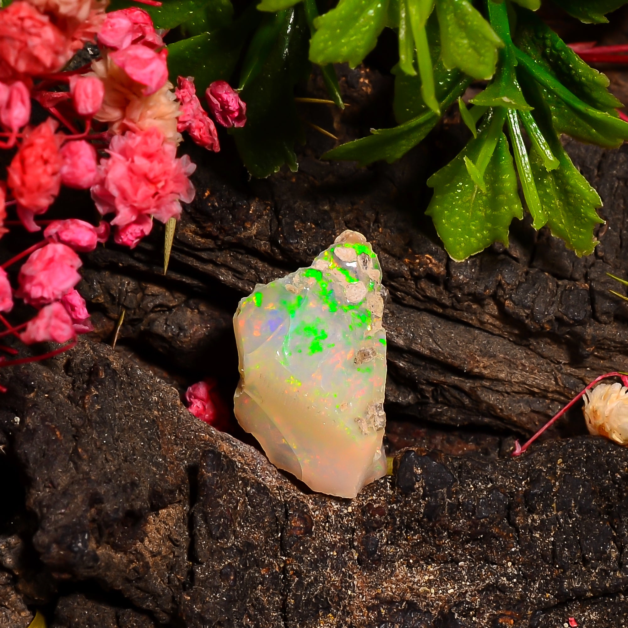 This authentic raw Ethiopian opal offers vibrant color play and natural brilliance, making it a valuable addition to any gemstone collection.