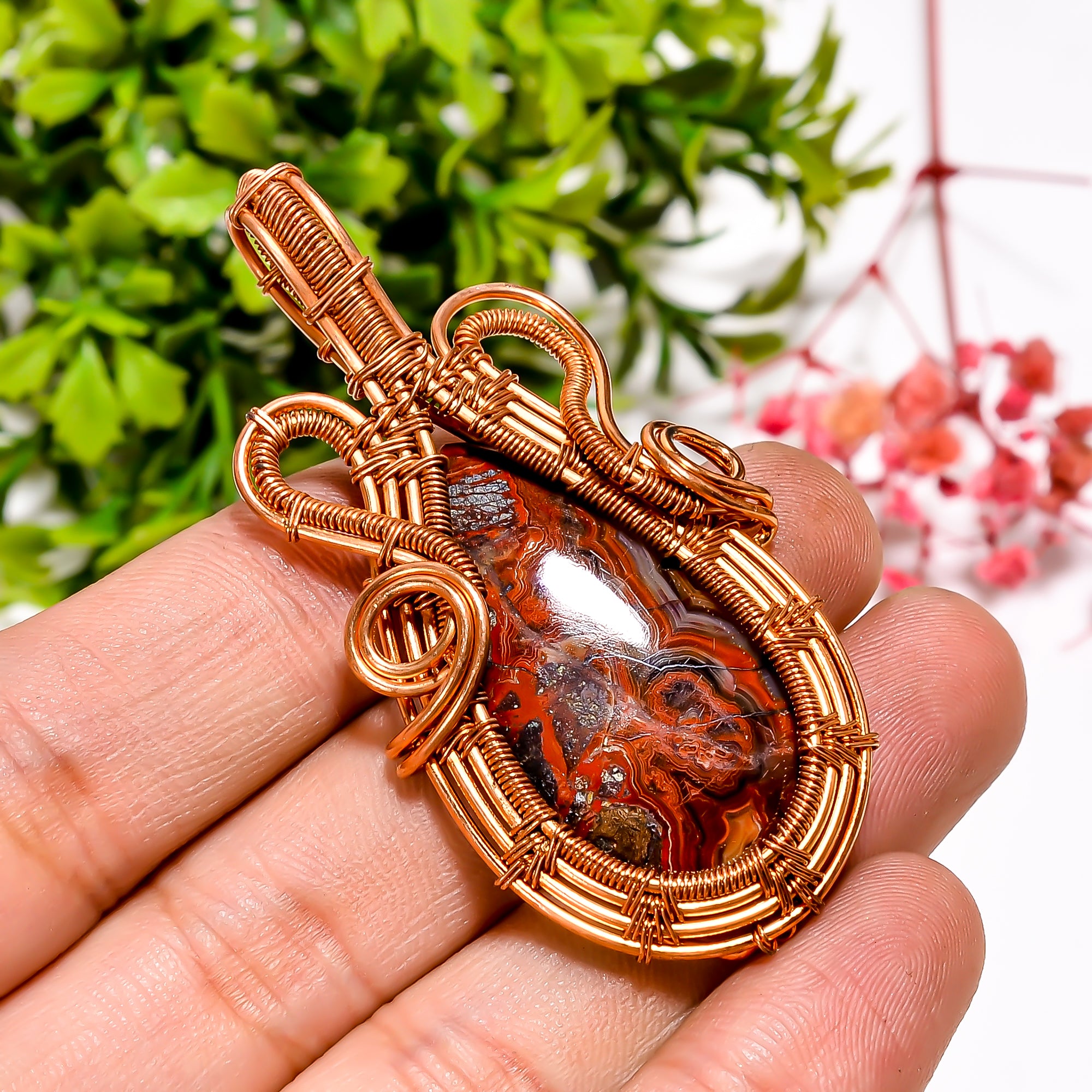 Fabulous A One Quality 100% Natural Crazy Lace Agate Gemstone Pear Vintage Handmade Pure Copper Wire Wrapped Pendant 2.3" 11.6 gms. KR11-10