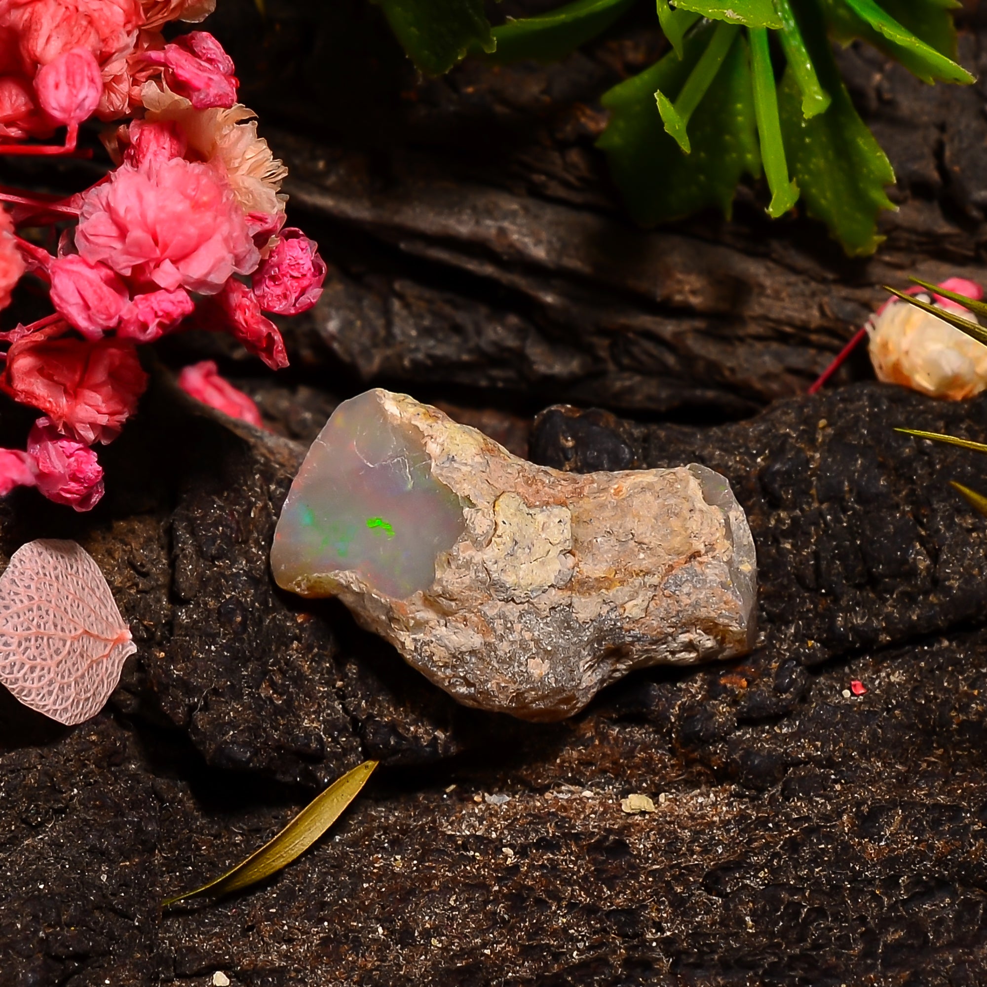 This authentic raw Ethiopian opal offers vibrant color play and natural brilliance, making it a valuable addition to any gemstone collection.