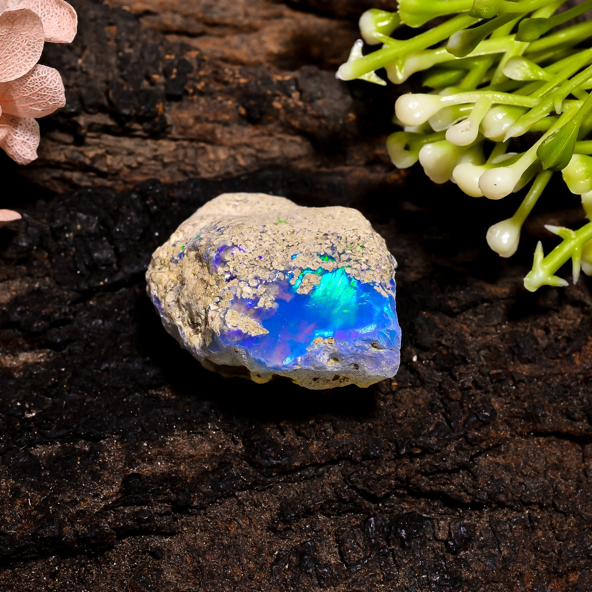This authentic raw Ethiopian opal offers vibrant color play and natural brilliance, making it a valuable addition to any gemstone collection.