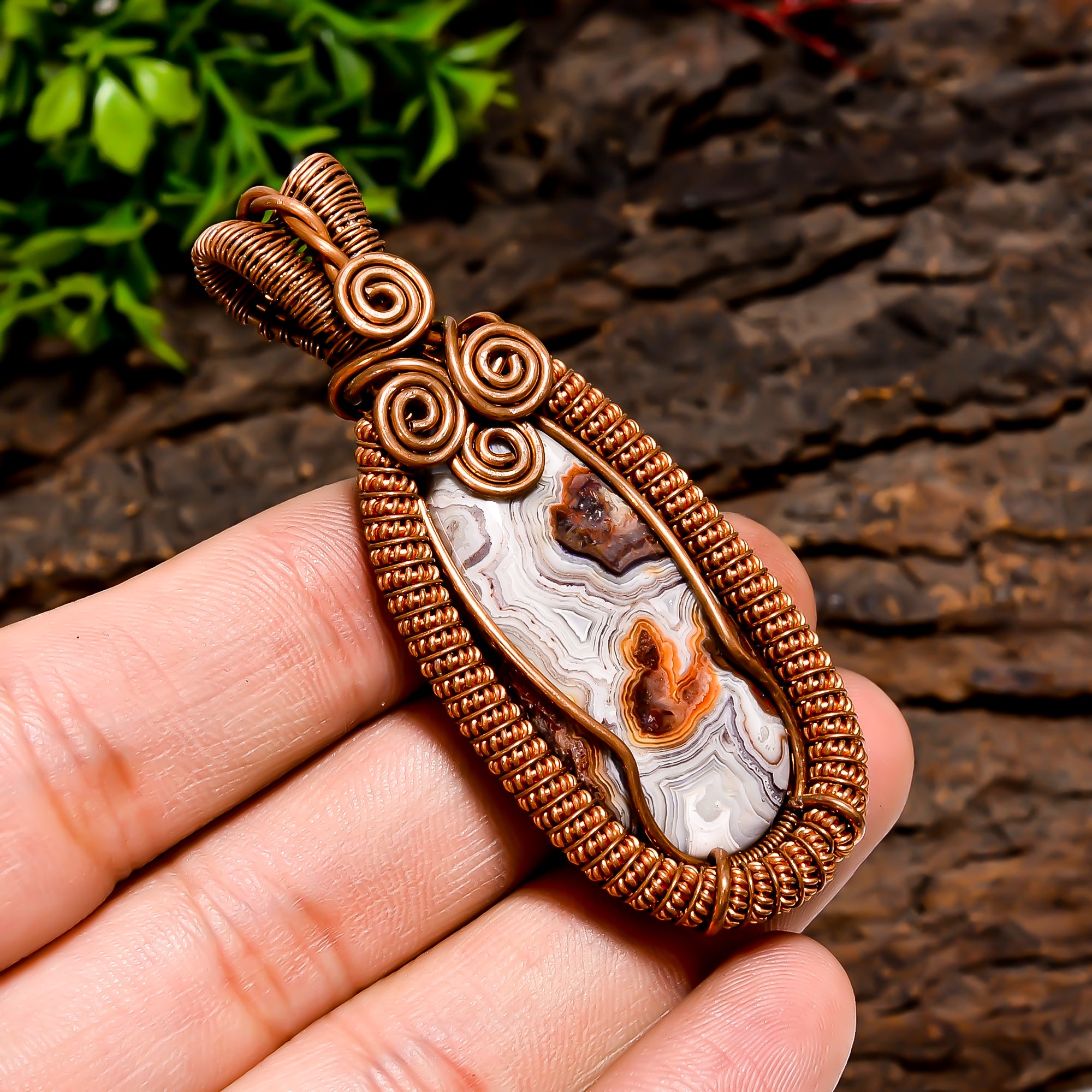 Fantastic A One Quality 100% Natural Crazy Lace Agate Gemstone Pear Vintage Handmade Pure Copper Wire Wrapped Pendant 2.4" 19.7 gms. KR10-61