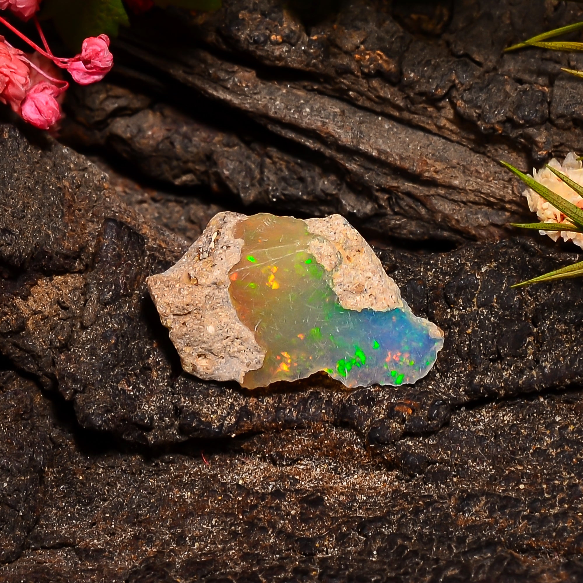 This authentic raw Ethiopian opal offers vibrant color play and natural brilliance, making it a valuable addition to any gemstone collection.