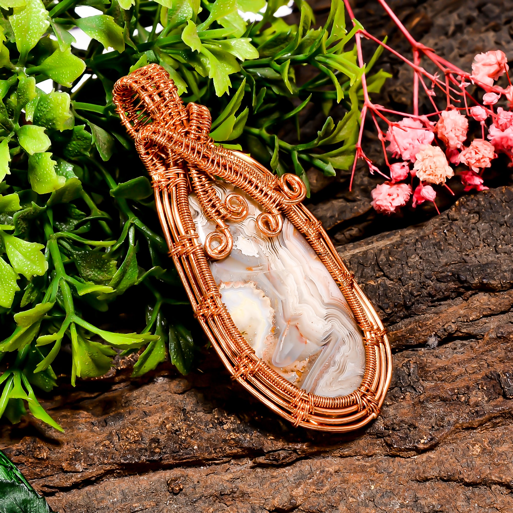 Mind Blowing A One 100% Natural Crazy Lace Agate Gemstone Oval Vintage Handmade Pure Copper Wire Wrapped Pendant 2.7" 18.3 gms. KR09-91