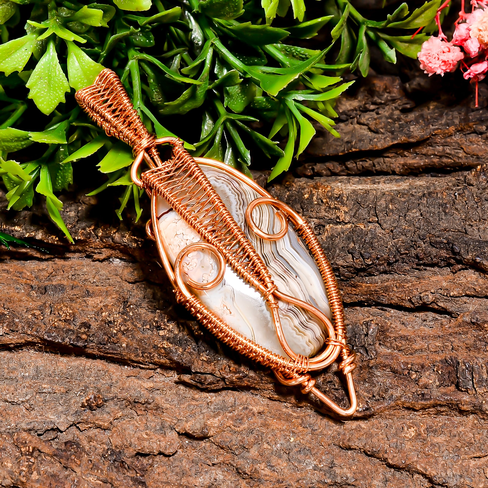 Splendid A One Quality 100% Natural Crazy Lace Agate Gemstone Oval Vintage Handmade Pure Copper Wire Wrapped Pendant 2.6" 11.2 gms. KR10-18
