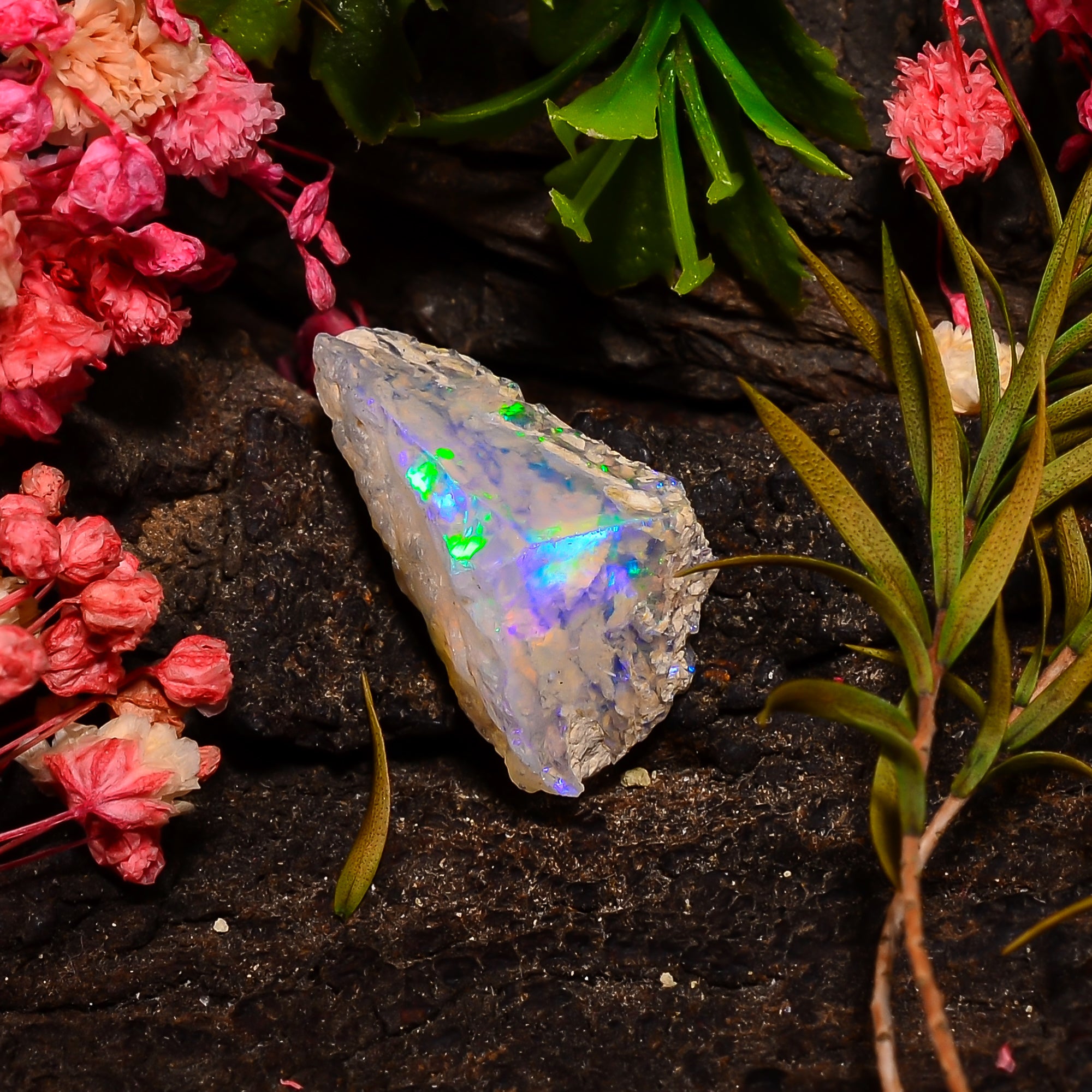 This authentic raw Ethiopian opal offers vibrant color play and natural brilliance, making it a valuable addition to any gemstone collection.