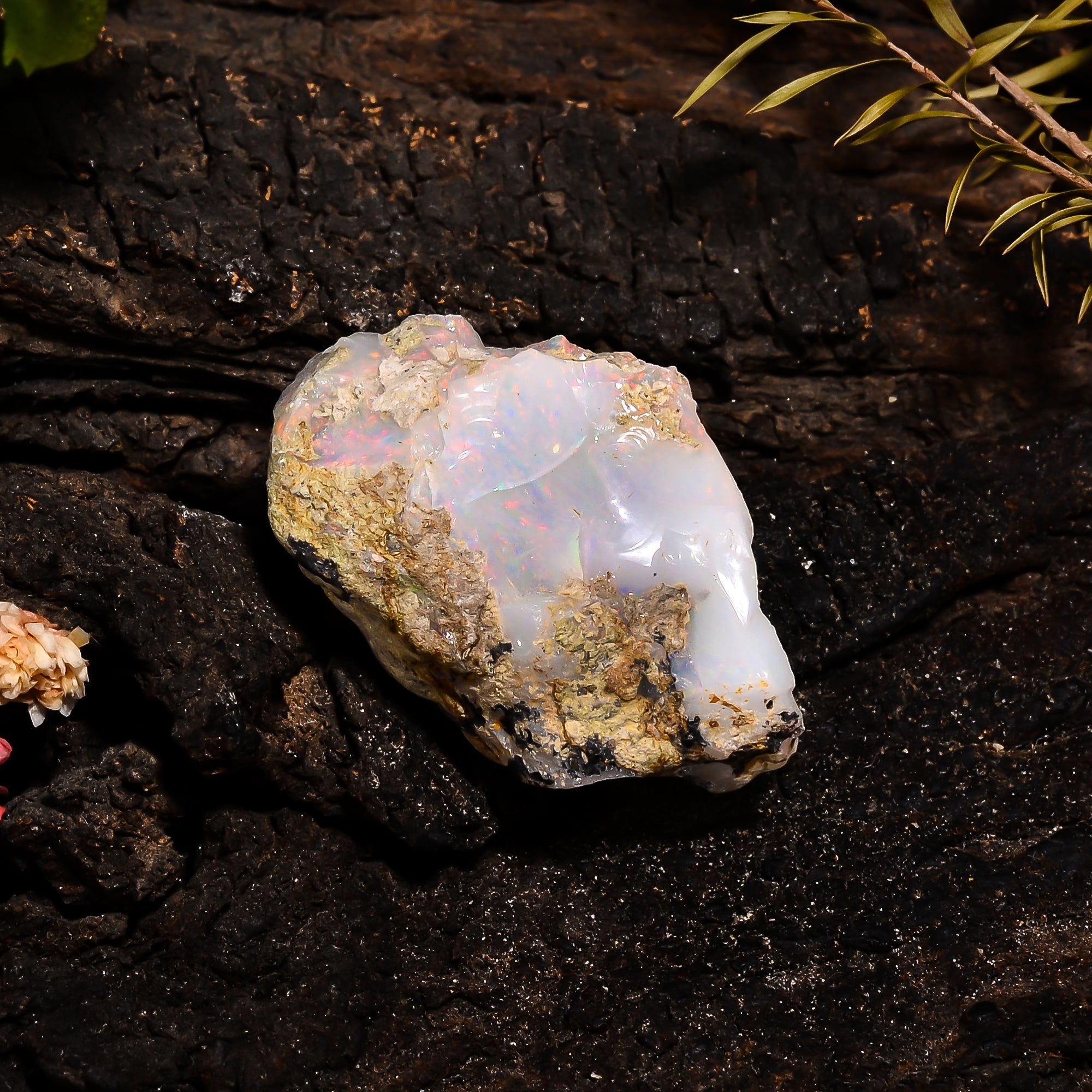 This authentic raw Ethiopian opal offers vibrant color play and natural brilliance, making it a valuable addition to any gemstone collection.