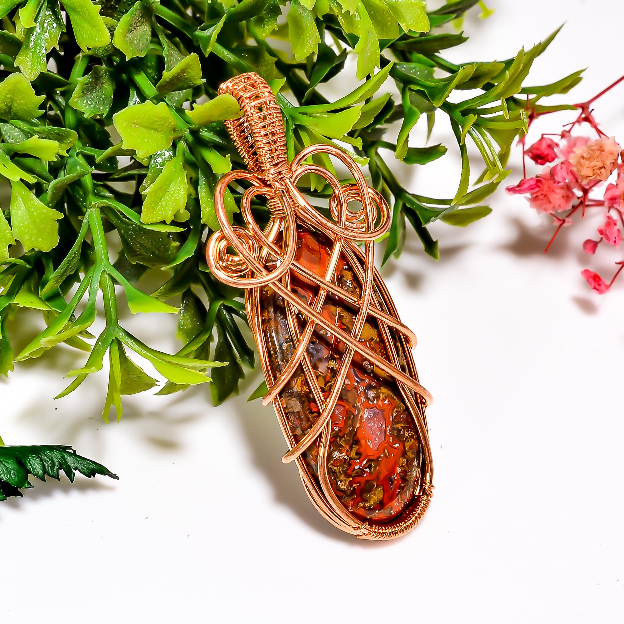 Terrific A One Quality 100% Natural Seam Agate Gemstone Oval Vintage Handmade Jewelry Pure Copper Wire Wrapped Pendant 2.2" 11.4 gms KR11-48 Sunkarton