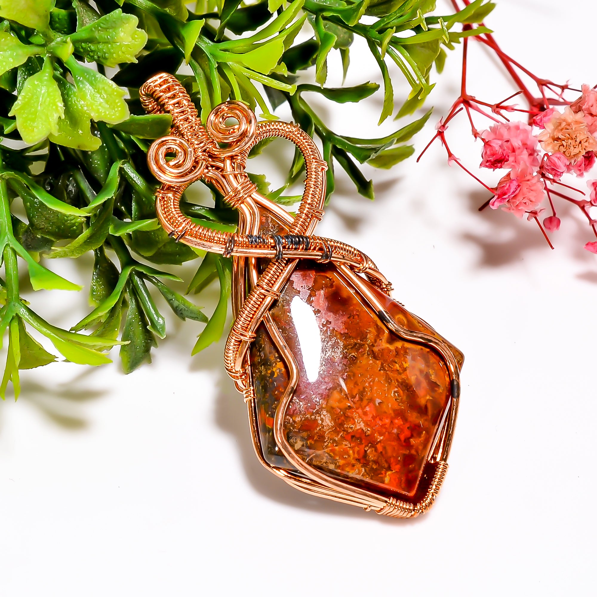 Terrific A One Quality 100% Natural Seam Agate Gemstone Shield Vintage Handmade Pure Copper Wire Wrapped Pendant 2.3" 12.5 gms. KR11-23