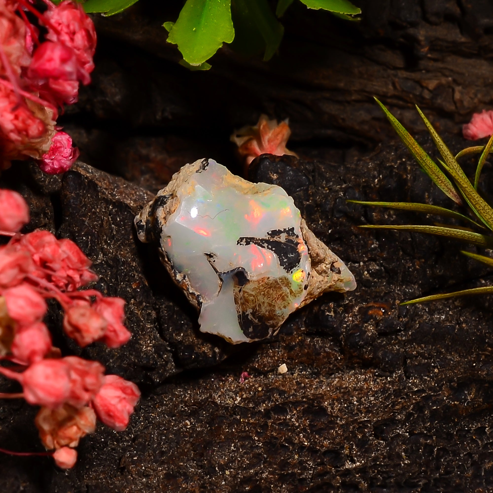 This authentic raw Ethiopian opal offers vibrant color play and natural brilliance, making it a valuable addition to any gemstone collection.