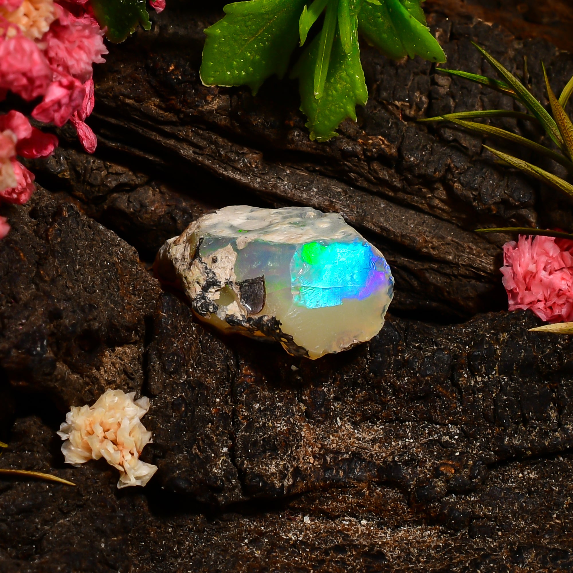 This authentic raw Ethiopian opal offers vibrant color play and natural brilliance, making it a valuable addition to any gemstone collection.