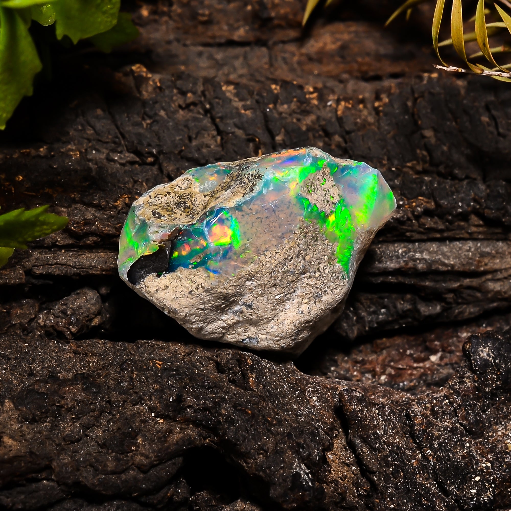 This authentic raw Ethiopian opal offers vibrant color play and natural brilliance, making it a valuable addition to any gemstone collection.