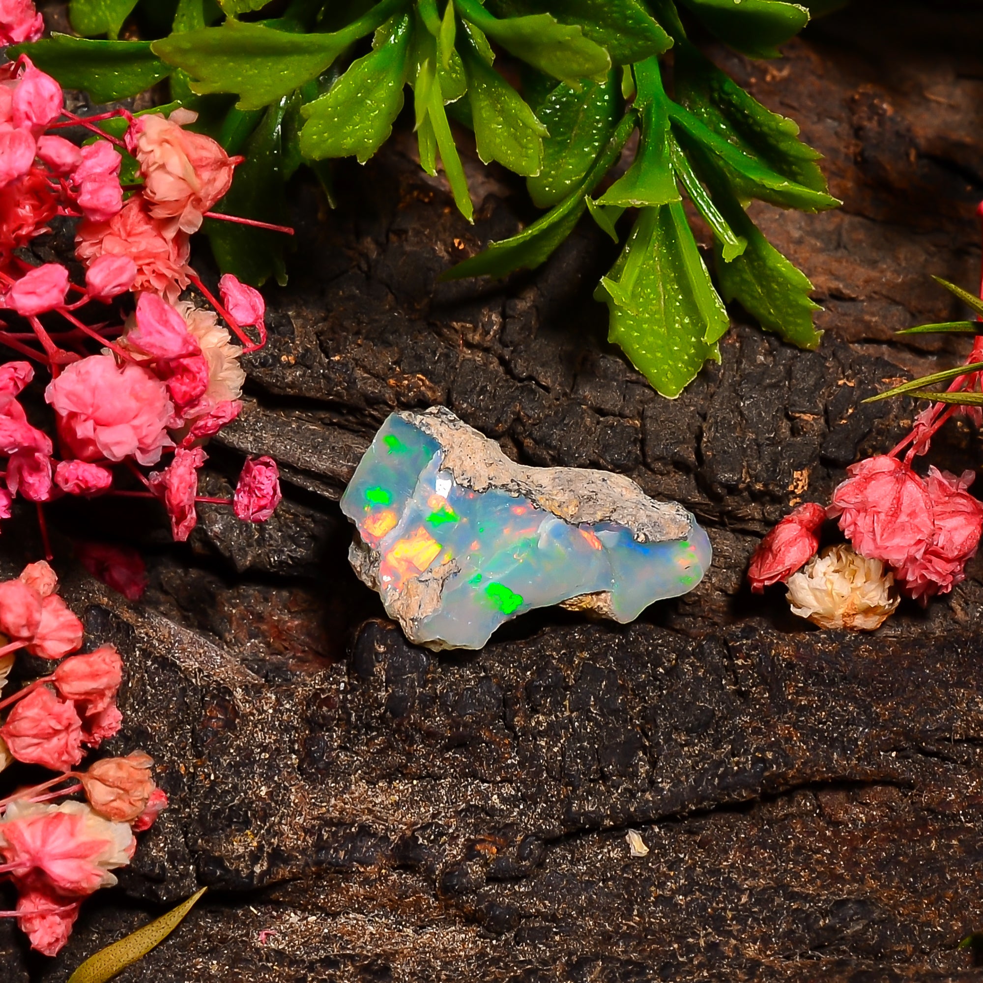 This authentic raw Ethiopian opal offers vibrant color play and natural brilliance, making it a valuable addition to any gemstone collection.