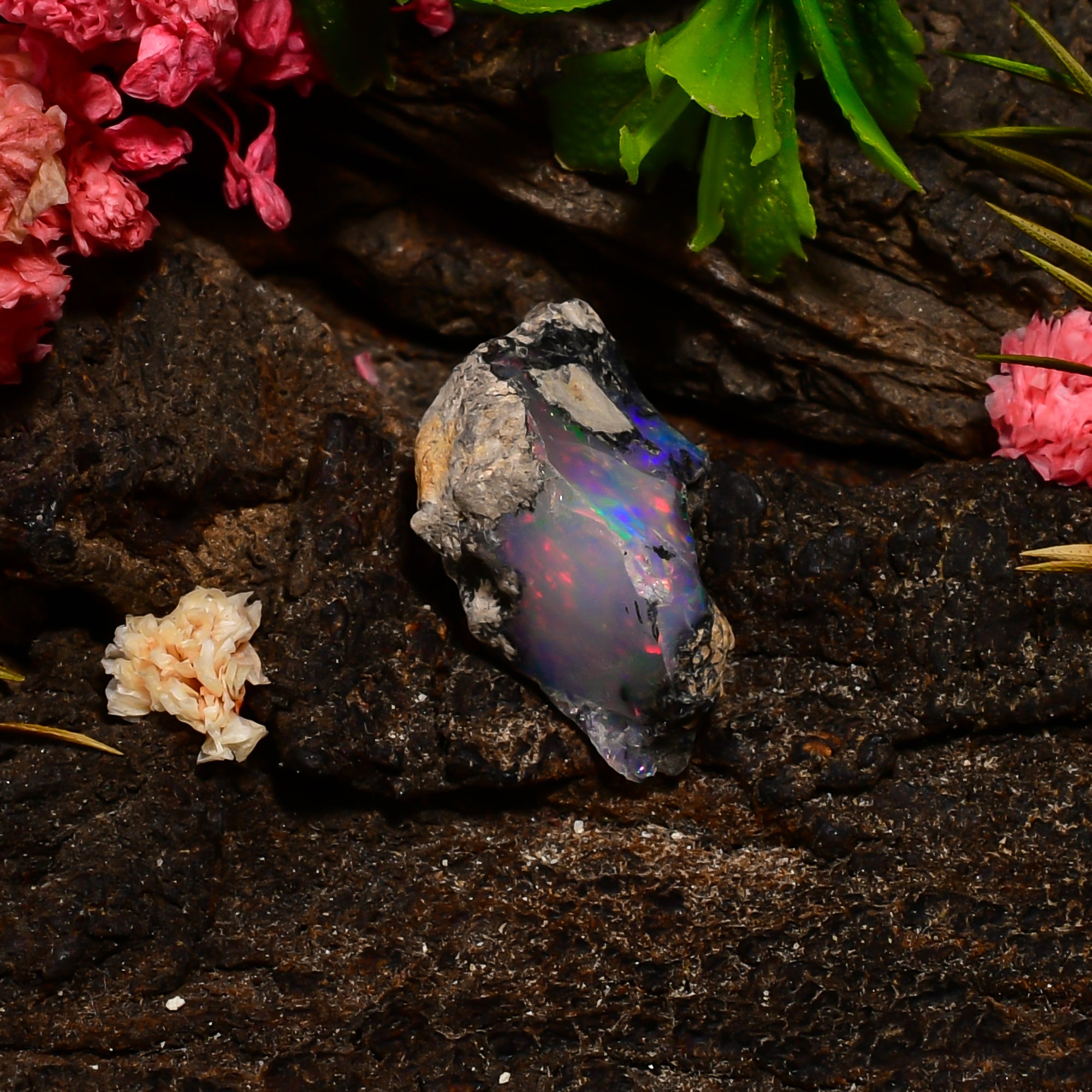 This authentic raw Ethiopian opal offers vibrant color play and natural brilliance, making it a valuable addition to any gemstone collection.