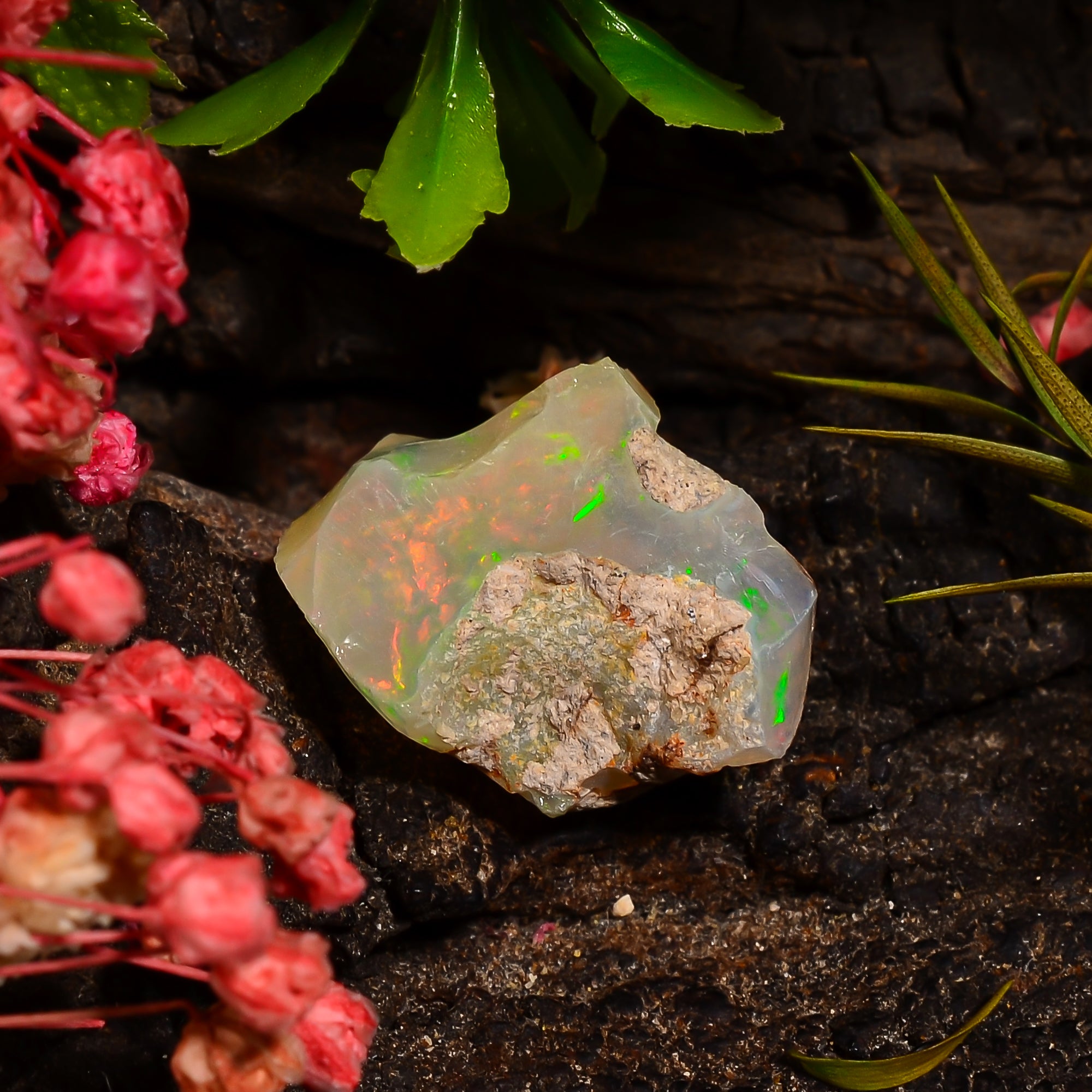 This authentic raw Ethiopian opal offers vibrant color play and natural brilliance, making it a valuable addition to any gemstone collection.
