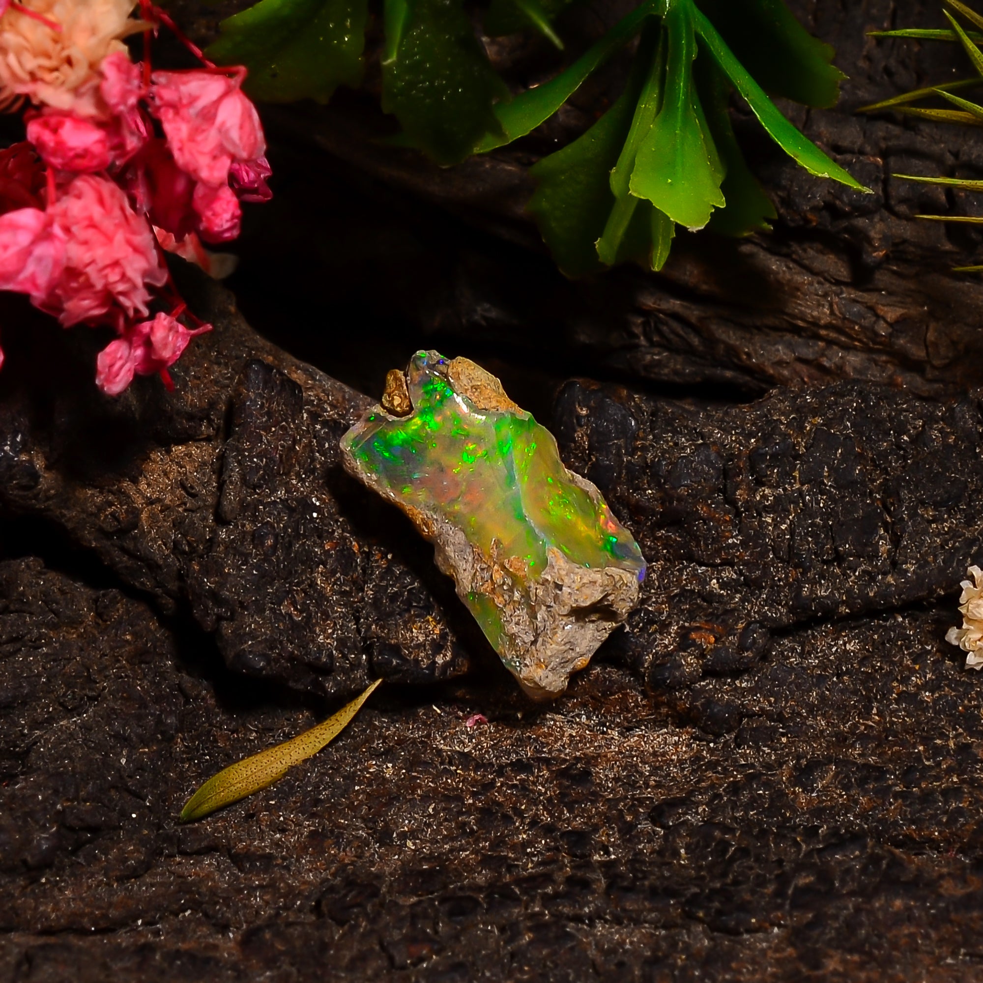 This authentic raw Ethiopian opal offers vibrant color play and natural brilliance, making it a valuable addition to any gemstone collection.