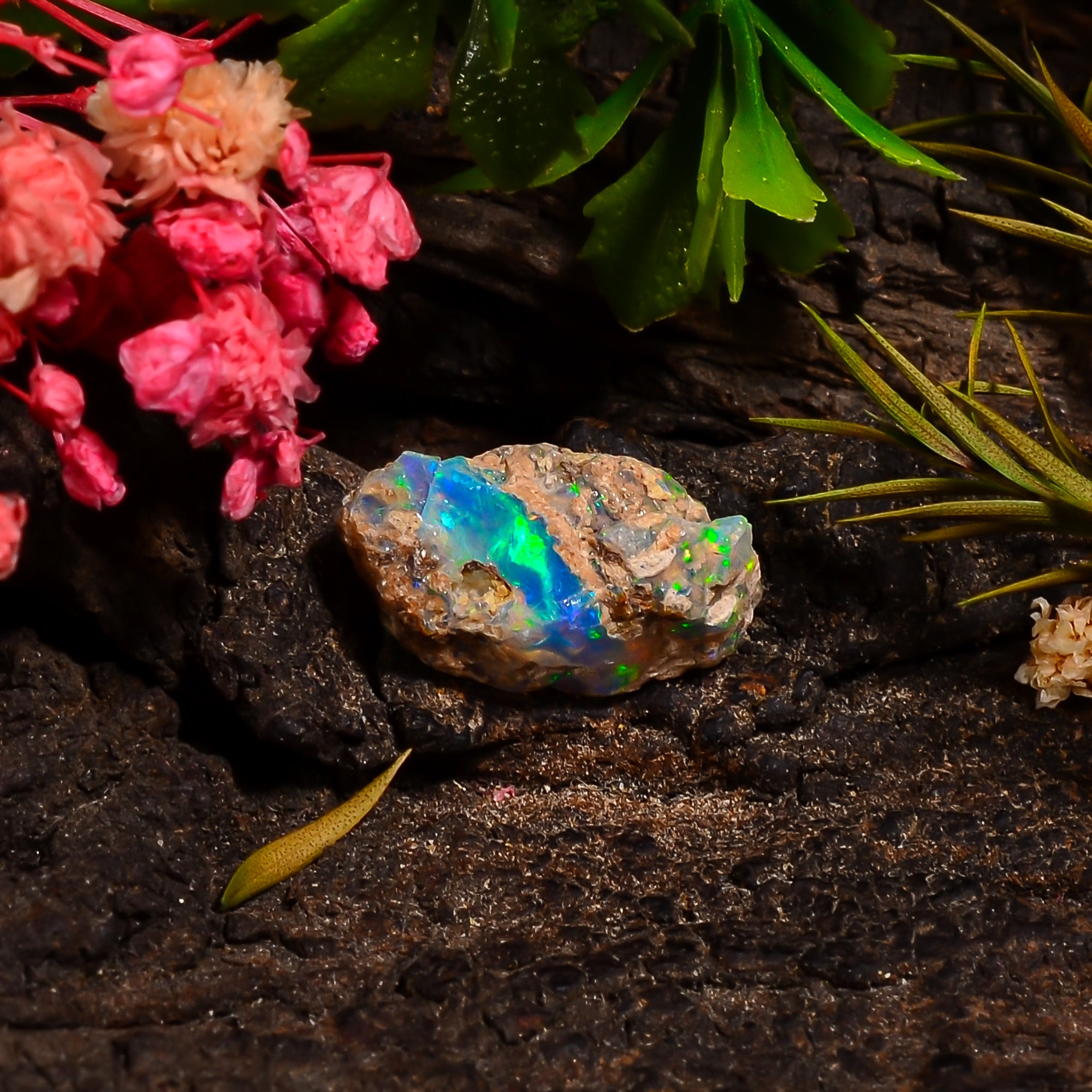 This authentic raw Ethiopian opal offers vibrant color play and natural brilliance, making it a valuable addition to any gemstone collection.