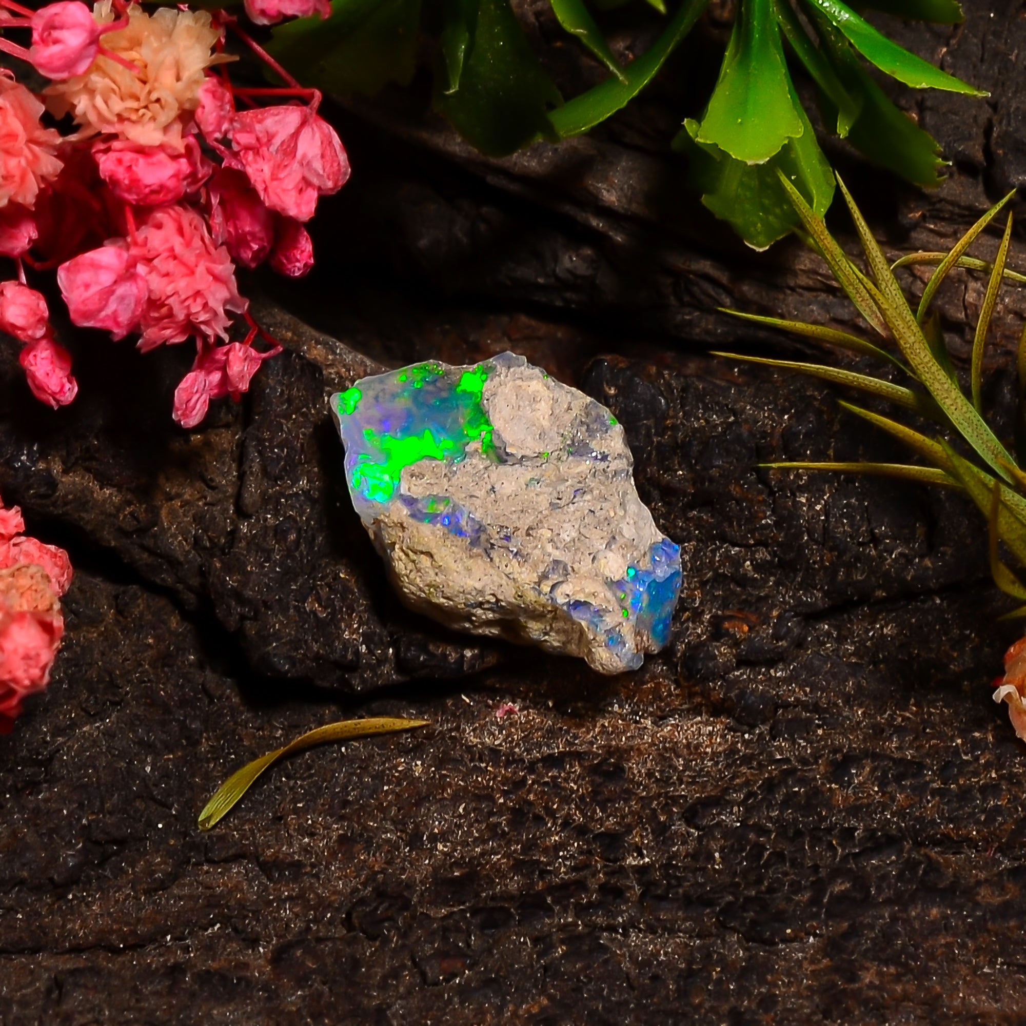 This authentic raw Ethiopian opal offers vibrant color play and natural brilliance, making it a valuable addition to any gemstone collection.