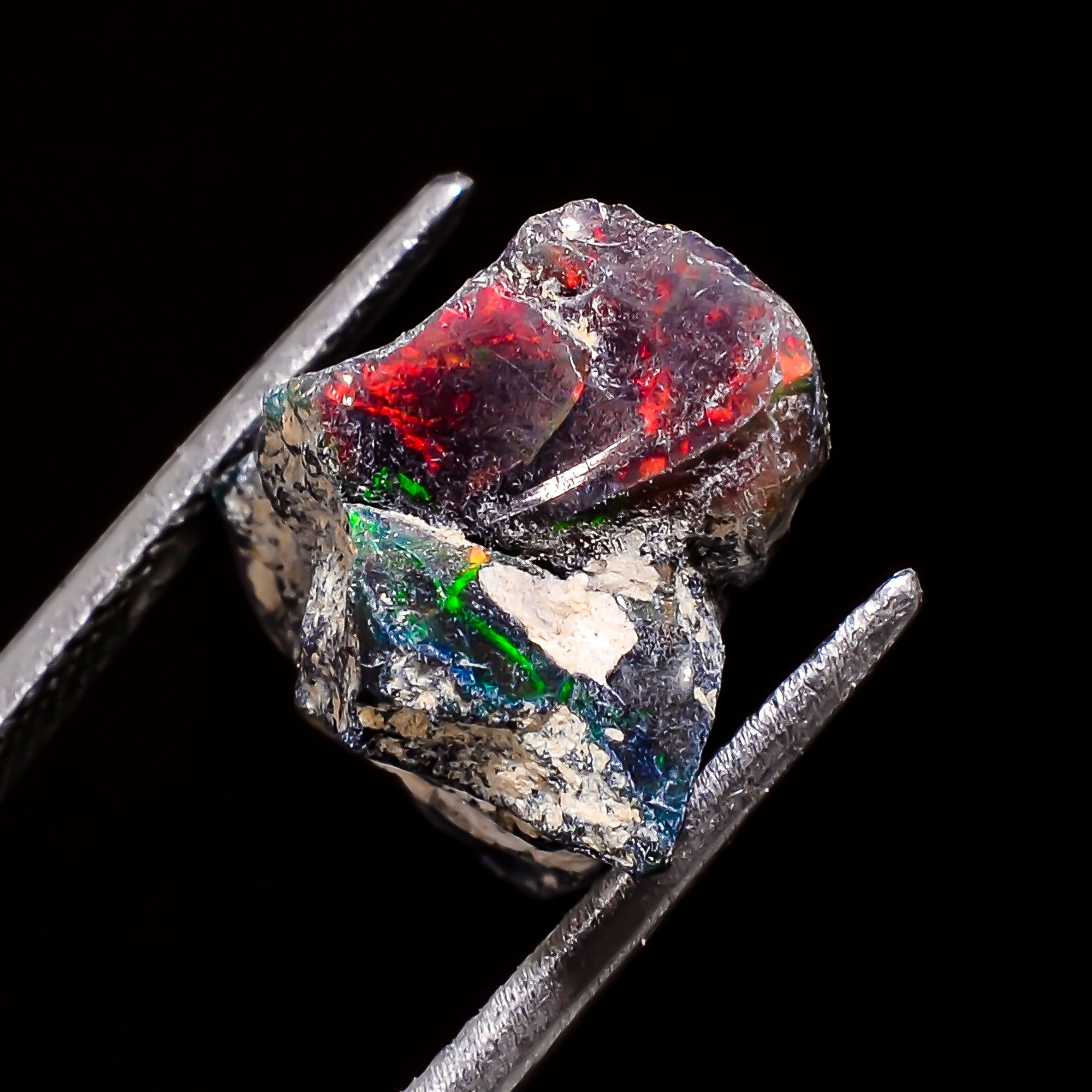 This authentic raw Fire Black Ethiopian opal offers vibrant color play and natural brilliance, making it a valuable addition to any gemstone collection.
