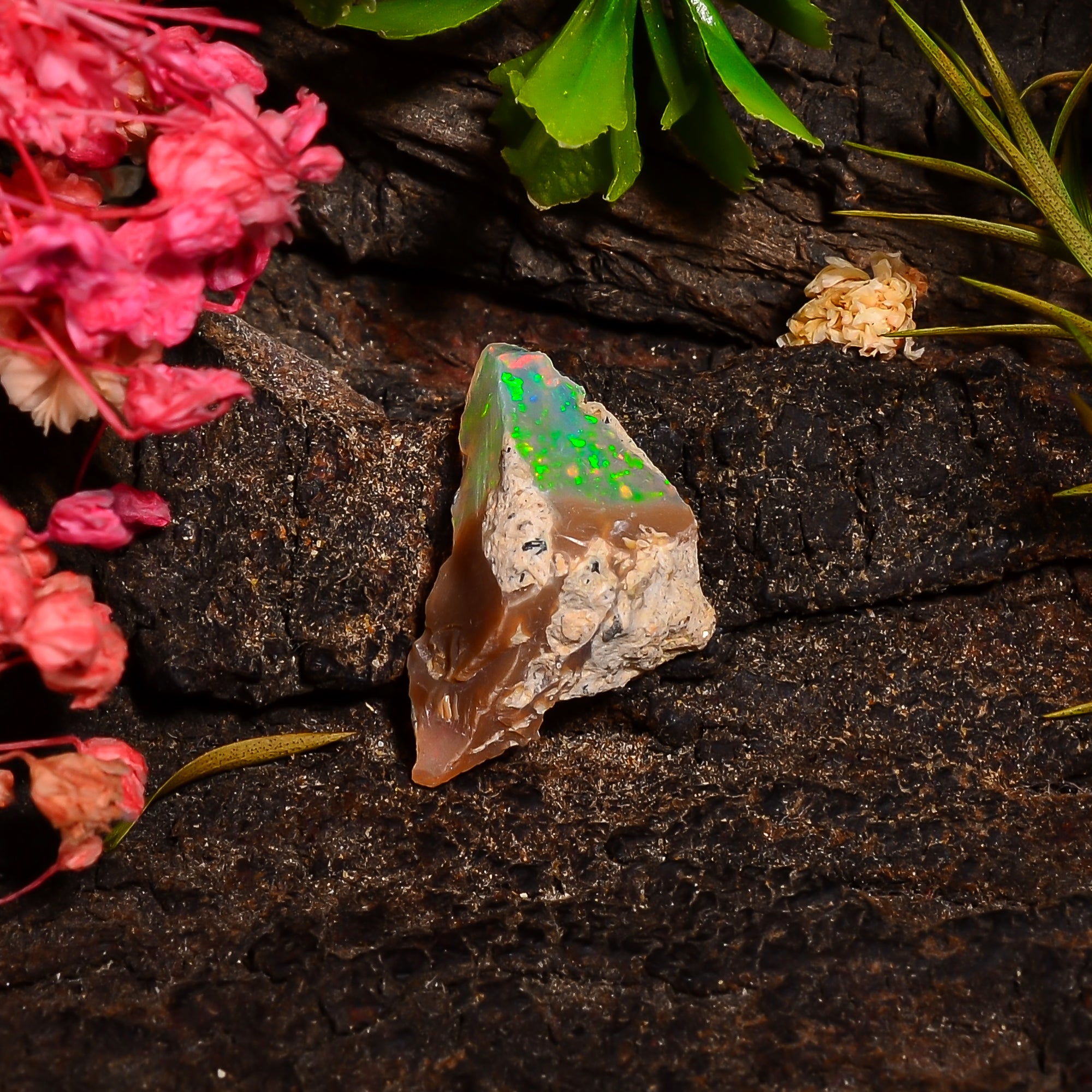This authentic raw Ethiopian opal offers vibrant color play and natural brilliance, making it a valuable addition to any gemstone collection.