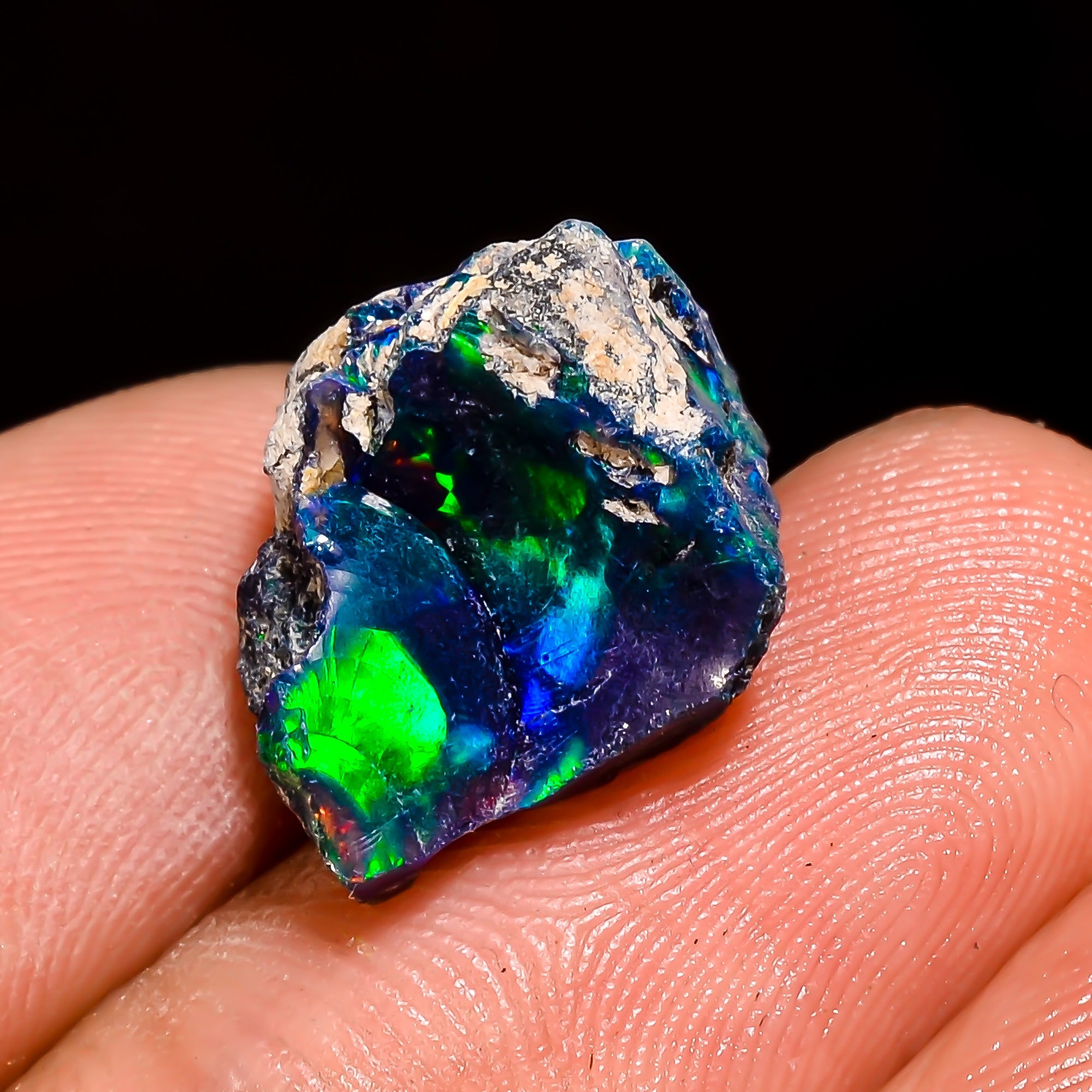 This authentic raw Fire Black Ethiopian opal offers vibrant color play and natural brilliance, making it a valuable addition to any gemstone collection.