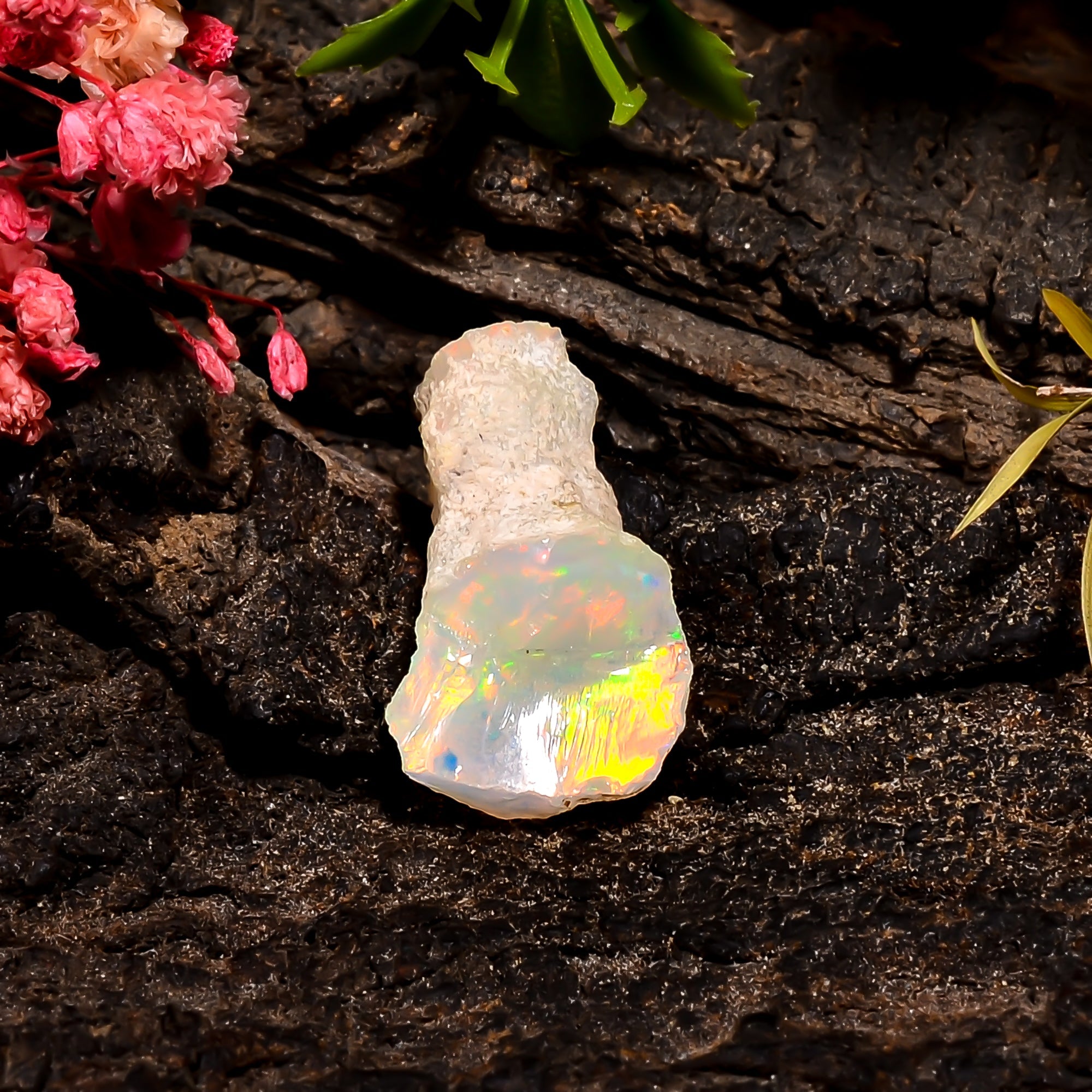 This authentic raw Ethiopian opal offers vibrant color play and natural brilliance, making it a valuable addition to any gemstone collection.