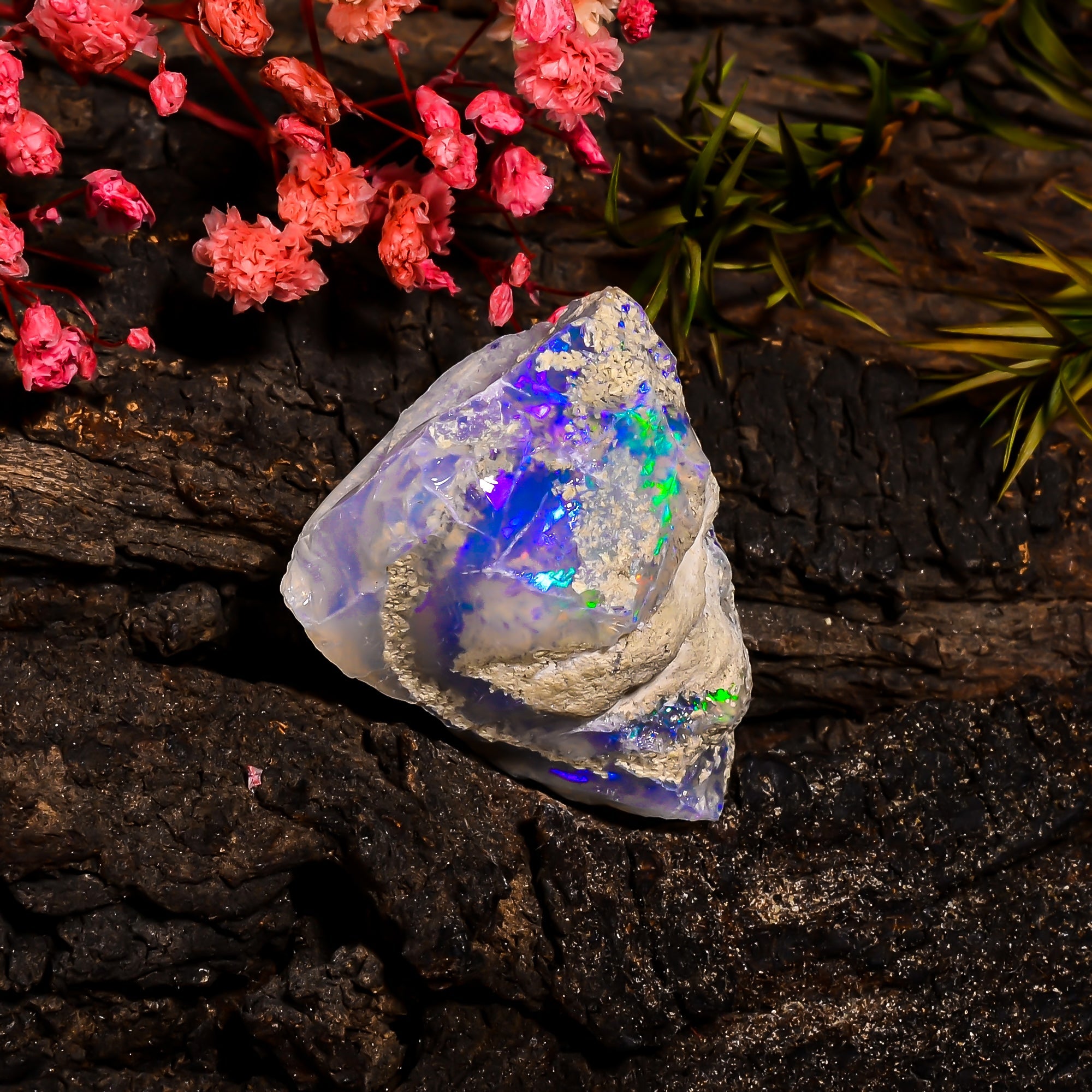 This authentic raw Ethiopian opal offers vibrant color play and natural brilliance, making it a valuable addition to any gemstone collection.