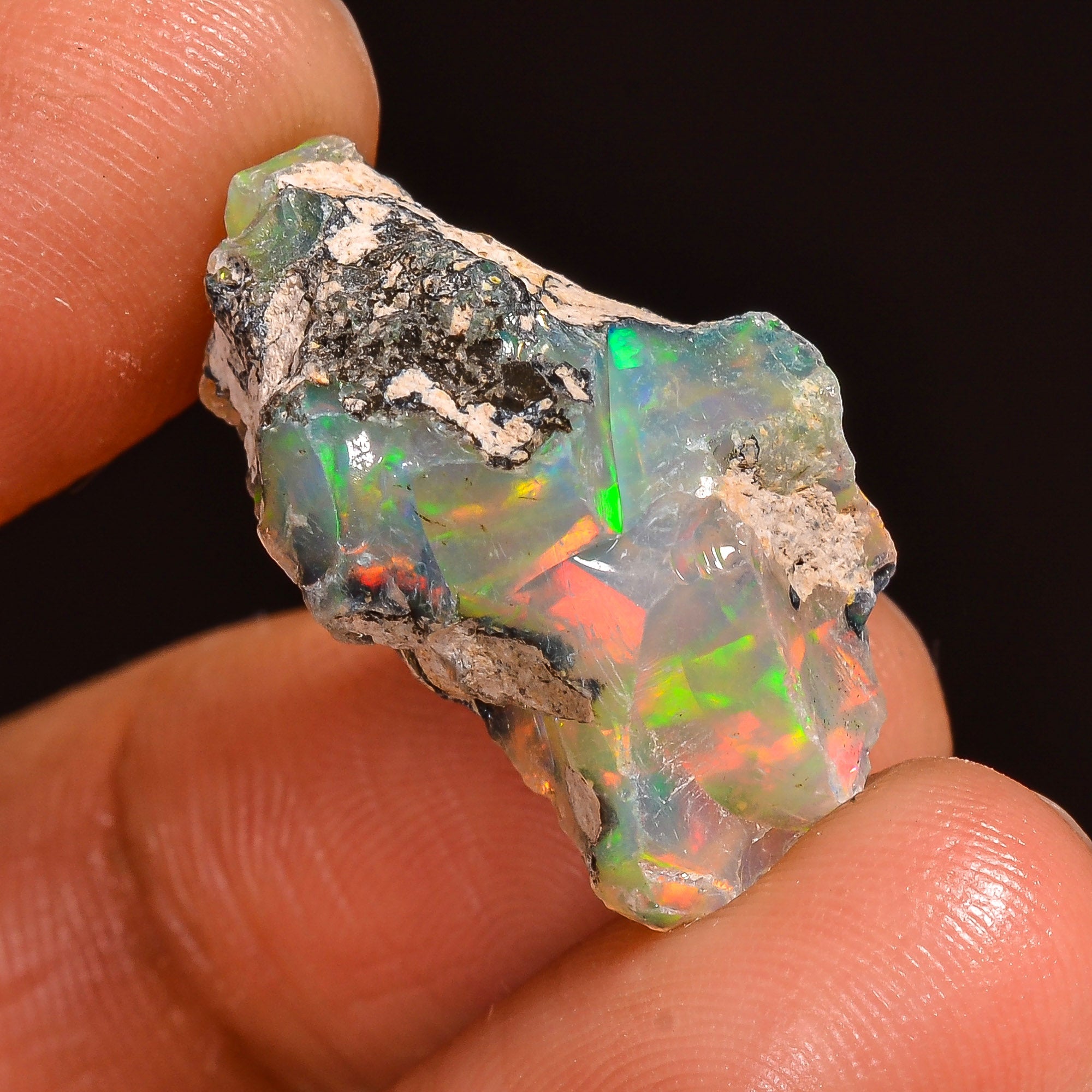 This authentic raw Ethiopian opal offers vibrant color play and natural brilliance, making it a valuable addition to any gemstone collection.