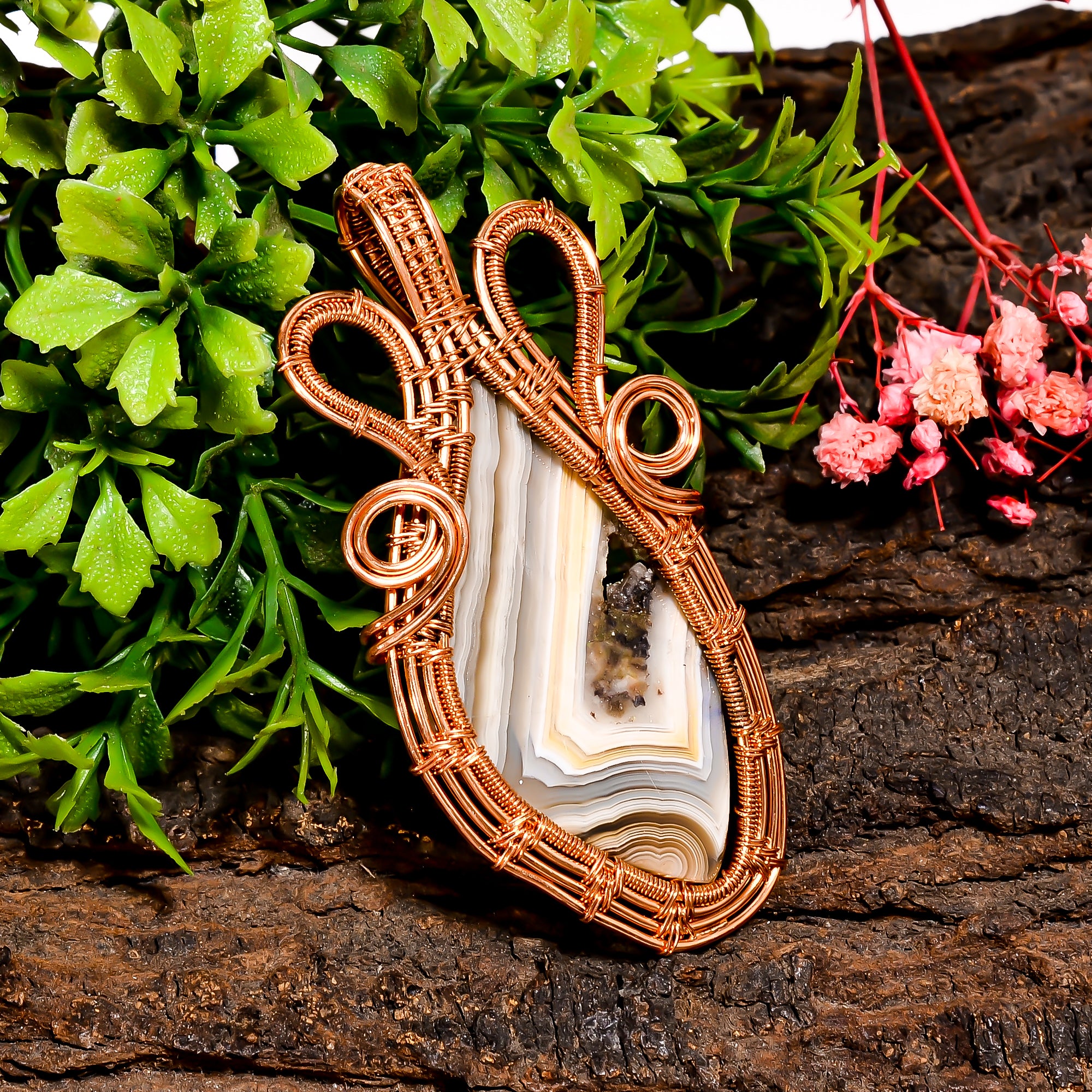 Amazing A One Quality 100% Natural Botswana Agate Gemstone Fancy Vintage Handmade Pure Copper Wire Wrapped Pendant 2.7" 15.8 gms. KR10-1 Sunkarton