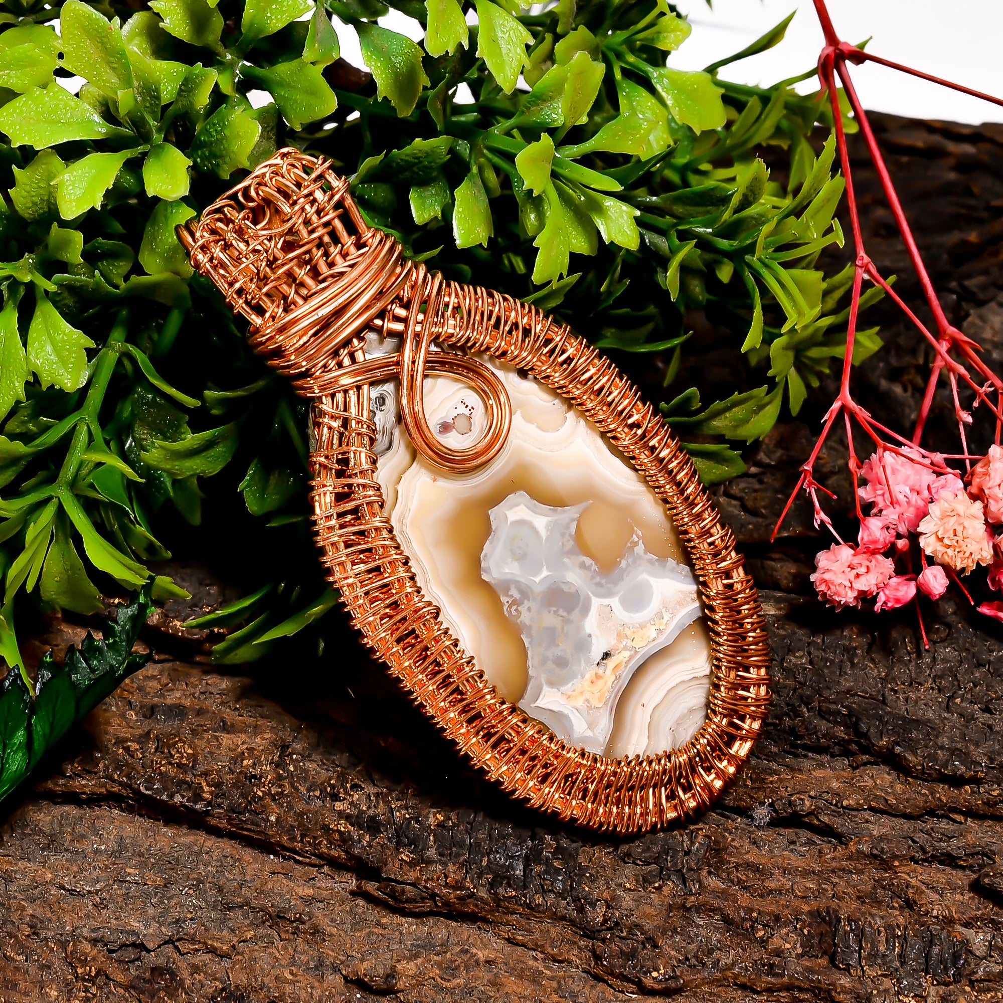 Amazing Top Grade Quality 100% Natural Crazy Lace Agate Gemstone Oval Vintage Handmade Pure Copper Wire Wrapped Pendant 2.7" 28 gms. KR09-51 Sunkarton