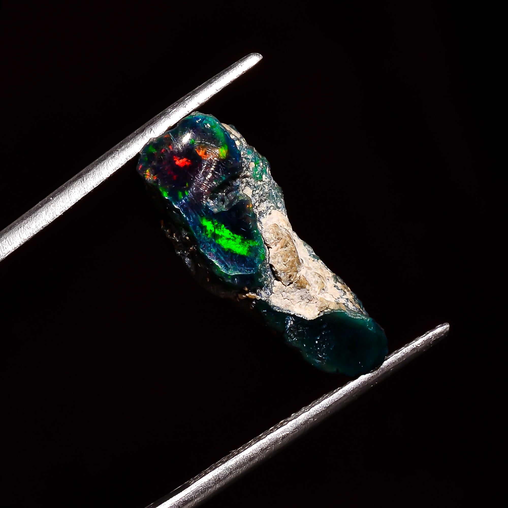 This authentic raw Fire Black Ethiopian opal offers vibrant color play and natural brilliance, making it a valuable addition to any gemstone collection.