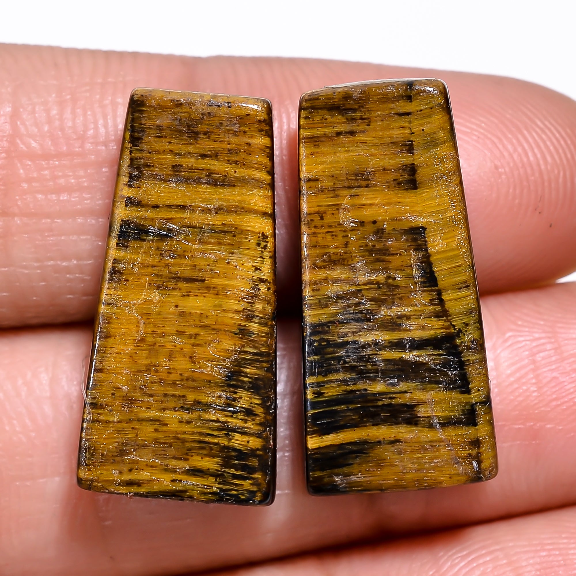 Classic Top Grade Quality 100% Natural Tiger Eye Fancy Shape Cabochon Loose Gemstone Pair For Making Earrings 22X11X4 MM 21.00 Cts. KR30-30