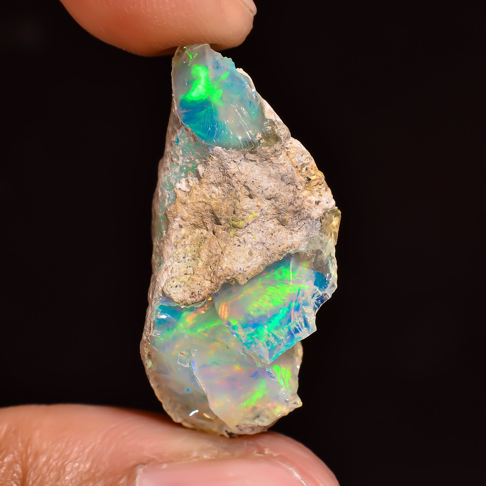 This authentic raw Ethiopian opal offers vibrant color play and natural brilliance, making it a valuable addition to any gemstone collection.