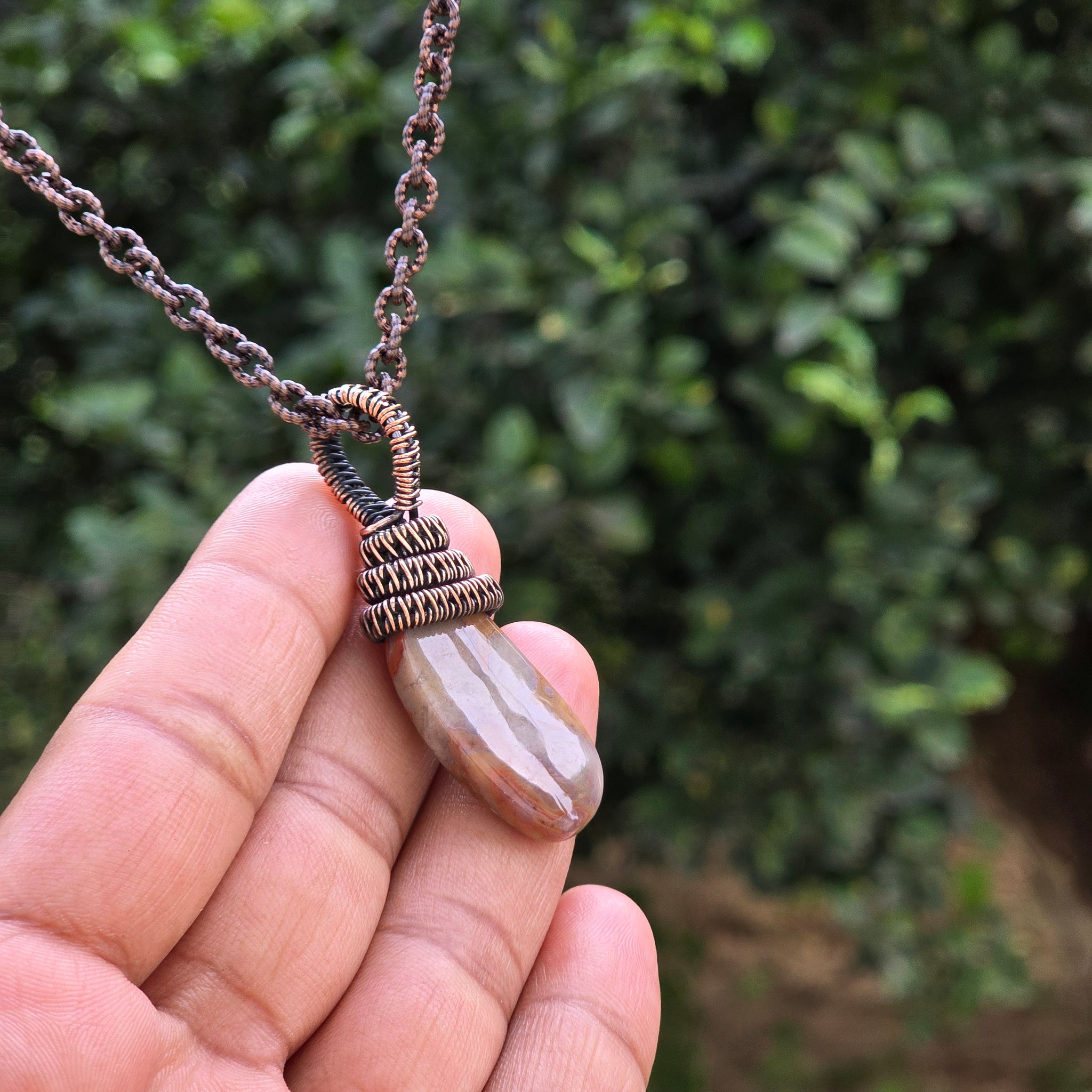 Crazy Lace Agate Gemstone Handmade Copper Wire Wrap Chain Pendant 1.96"