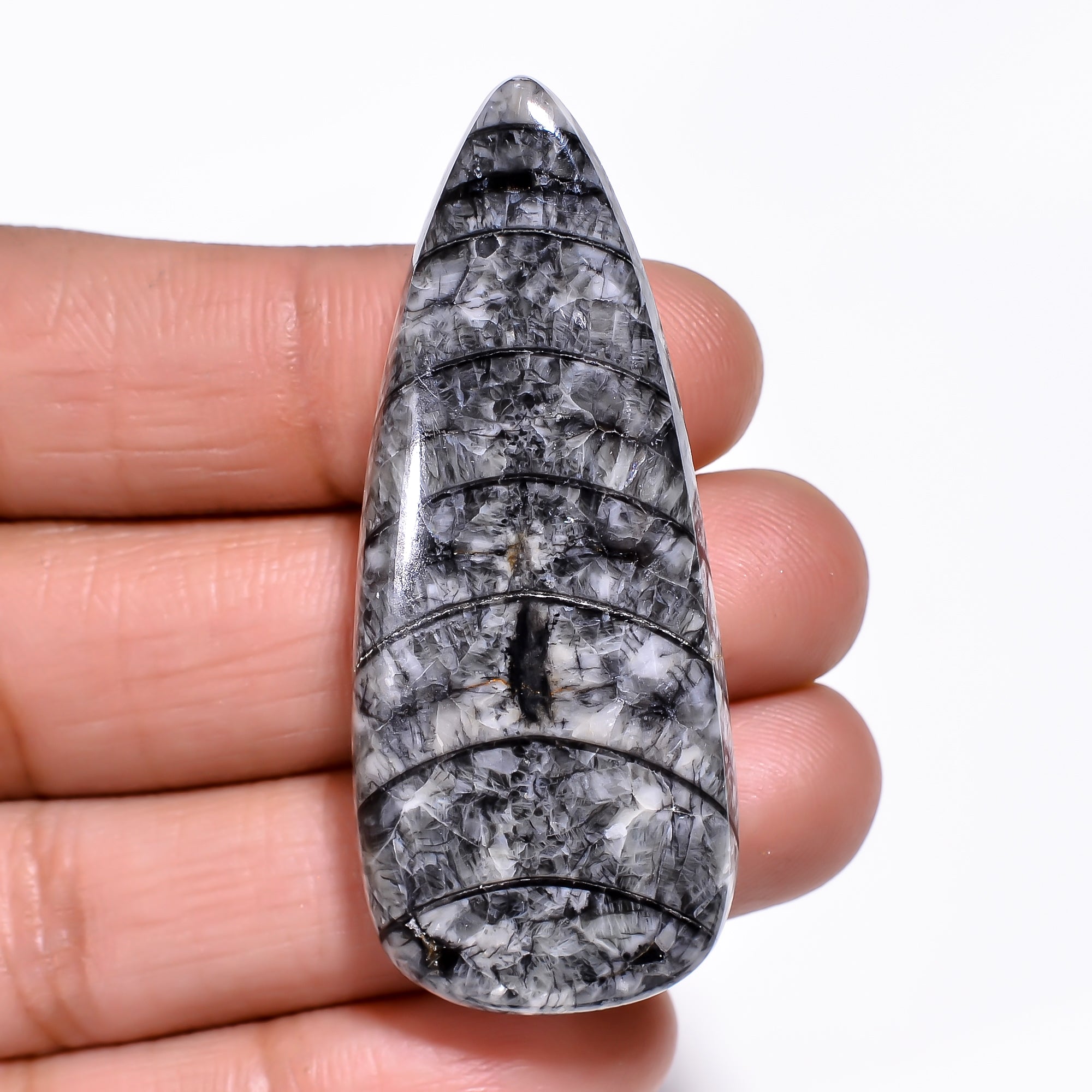 Dazzling Top Grade Quality 100% Natural Orthoceras Fossil Pear Shape Cabochon Loose Gemstone For Making Jewelry 49X20X7 MM 58.50 Cts. KR30-6
