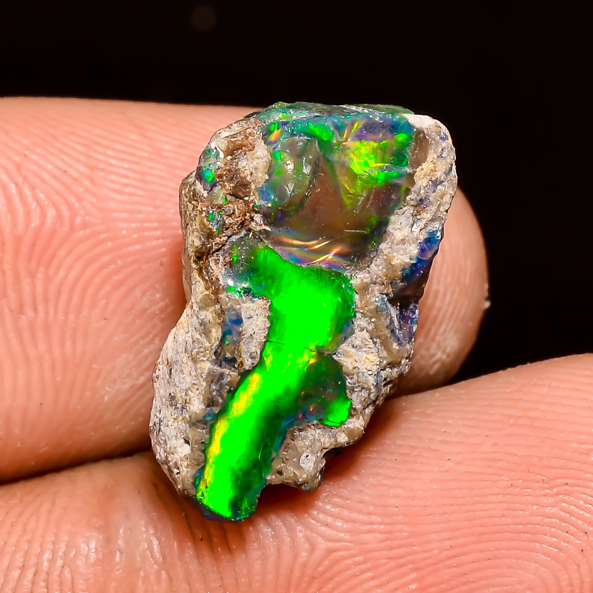 This authentic raw Fire Black Ethiopian opal offers vibrant color play and natural brilliance, making it a valuable addition to any gemstone collection.