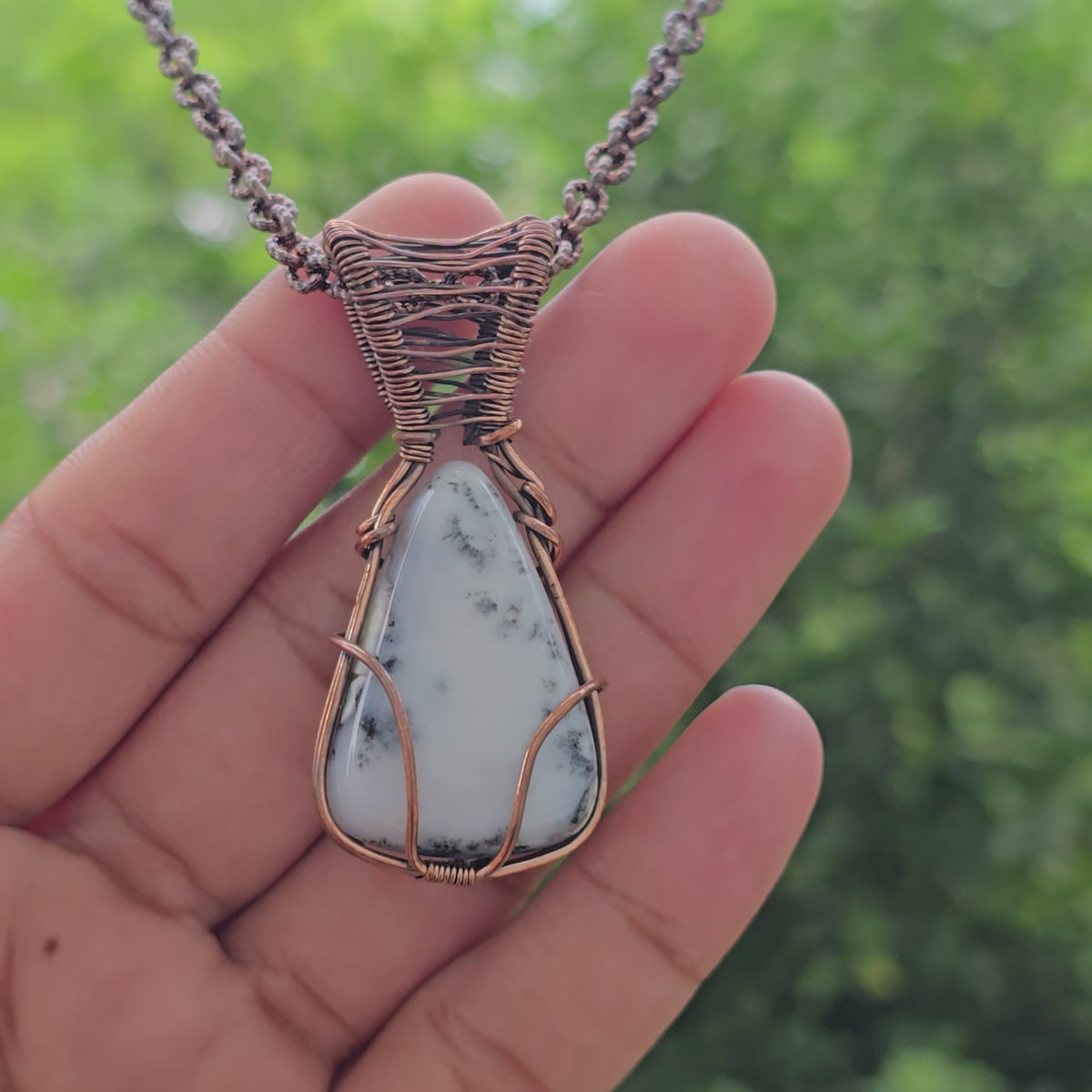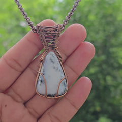 Dendrite Opal Gemstone Handmade Copper Wire Wrap Chain Pendant 2.16"