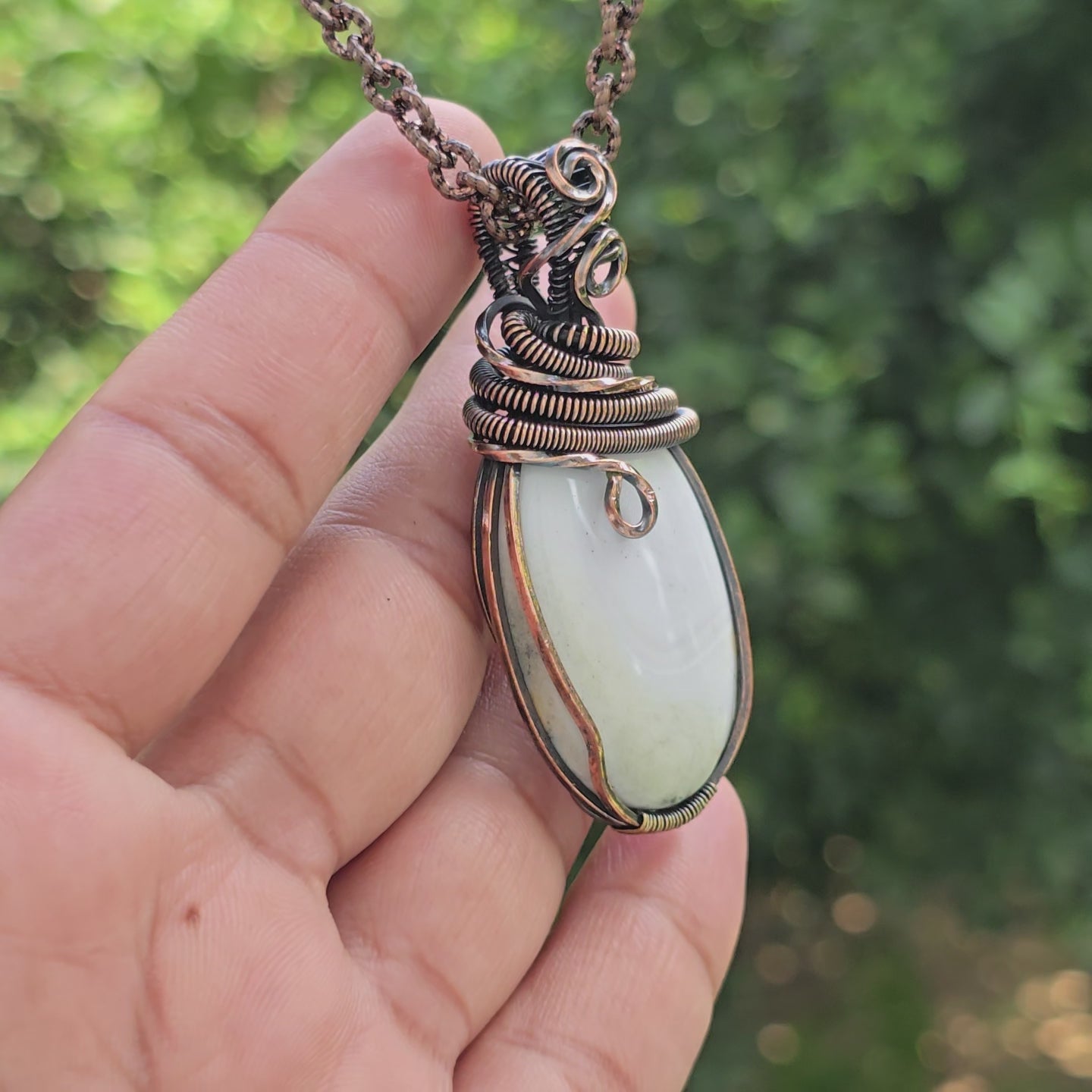 Dendrite Opal Gemstone Handmade Copper Wire Wrap Chain Pendant 2.36"