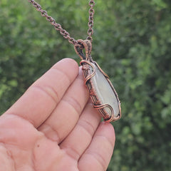 Dendritic Agate Gemstone Handmade Copper Wire Wrap Chain Pendant 2.55"
