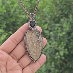 Dinosaur Bone Fossil Gemstone Handmade Copper Wire Wrap Chain Pendant 3.34" Sunkarton