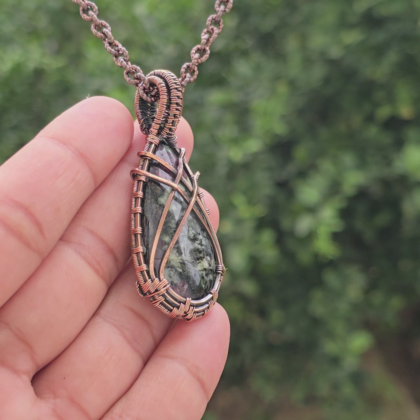 Eudialyte Gemstone Handmade Copper Wire Wrap Chain Pendant 2.36"