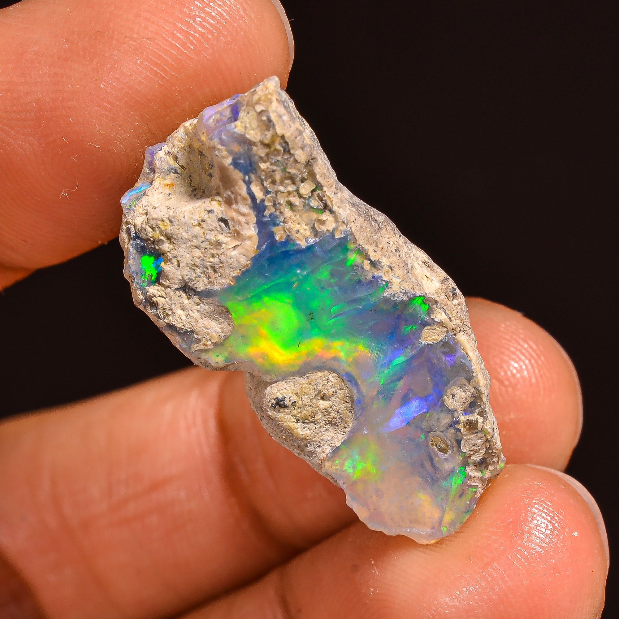 This authentic raw Ethiopian opal offers vibrant color play and natural brilliance, making it a valuable addition to any gemstone collection.